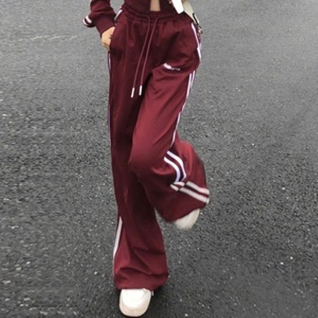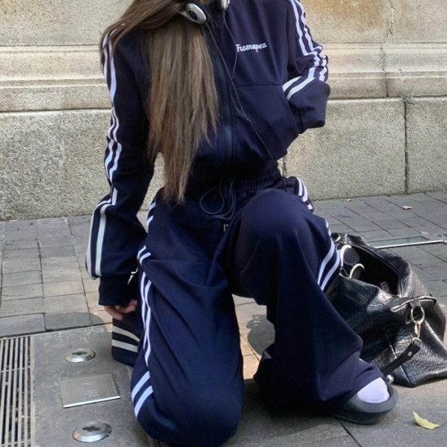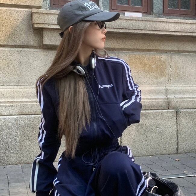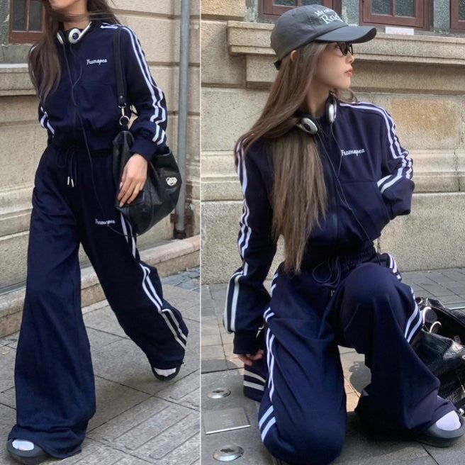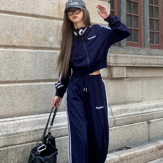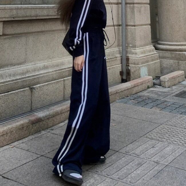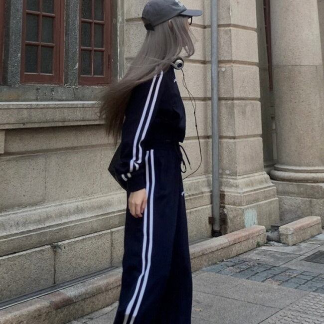 ジャージ セットアップ レディース 韓国 ファッション サイドライン クロップド ジャケット フレア ワイドパンツ 上下セット