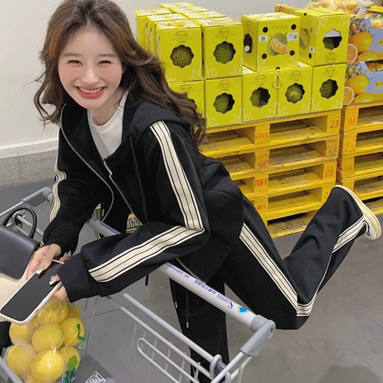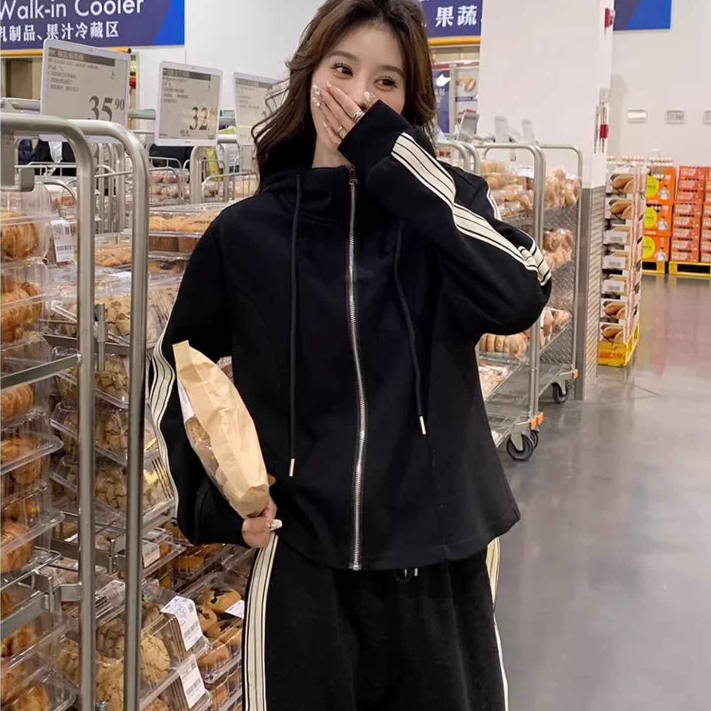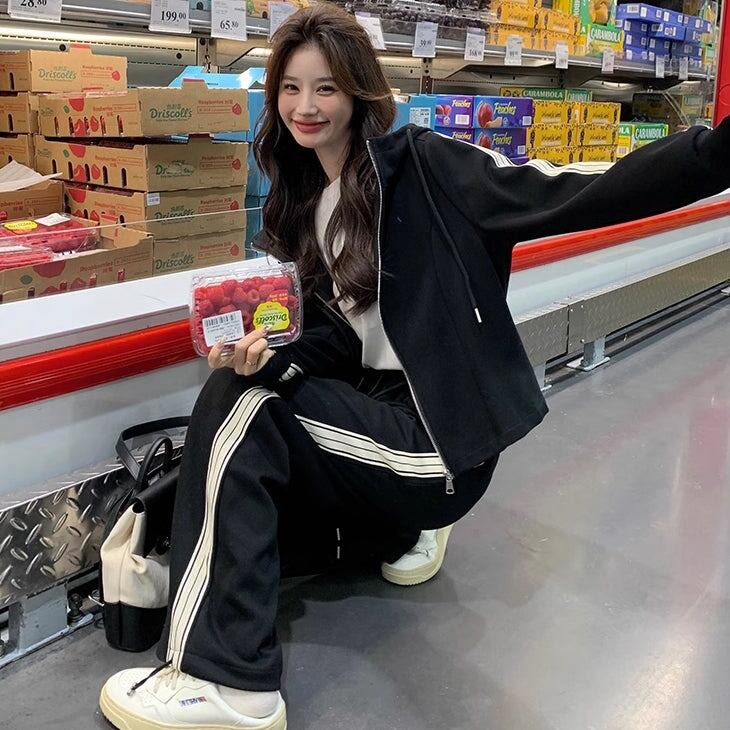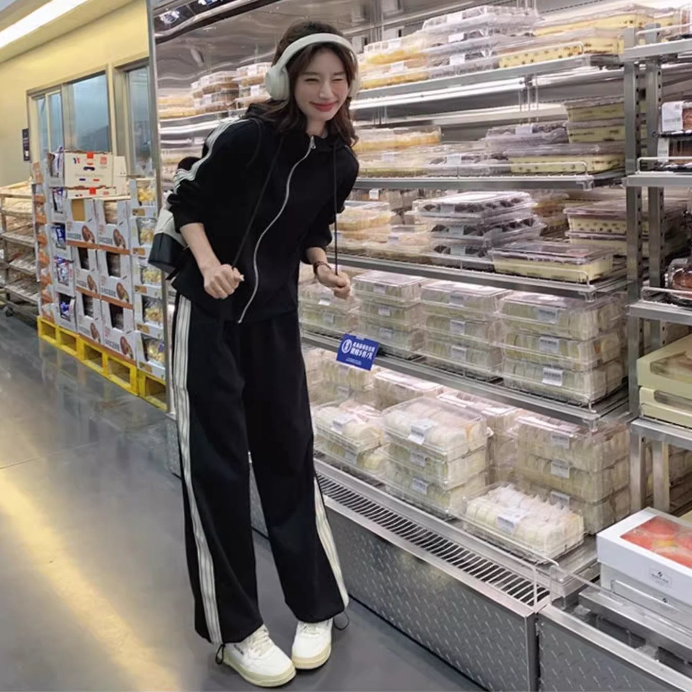 ジャージセットアップ レディース 韓国 ファッション サイドライン ジップジャケット トラックトップ ワイドパンツ ラインパンツ パーカージャケット スウェットセットアップ デイリー ストリート カジュアル