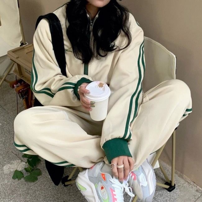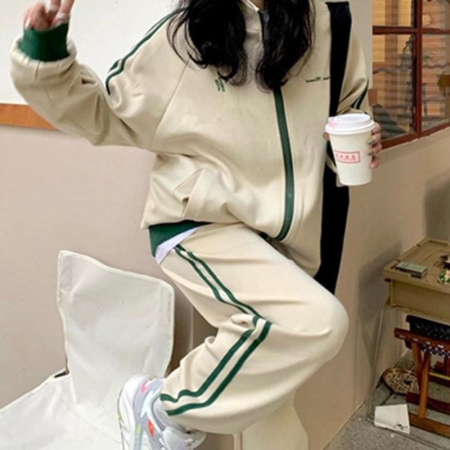 ジャージ セットアップ レディース 韓国 ファッション スポーツ ストリート 上下セット サイドライン オーバーサイズ カジュアルスポーツウェア