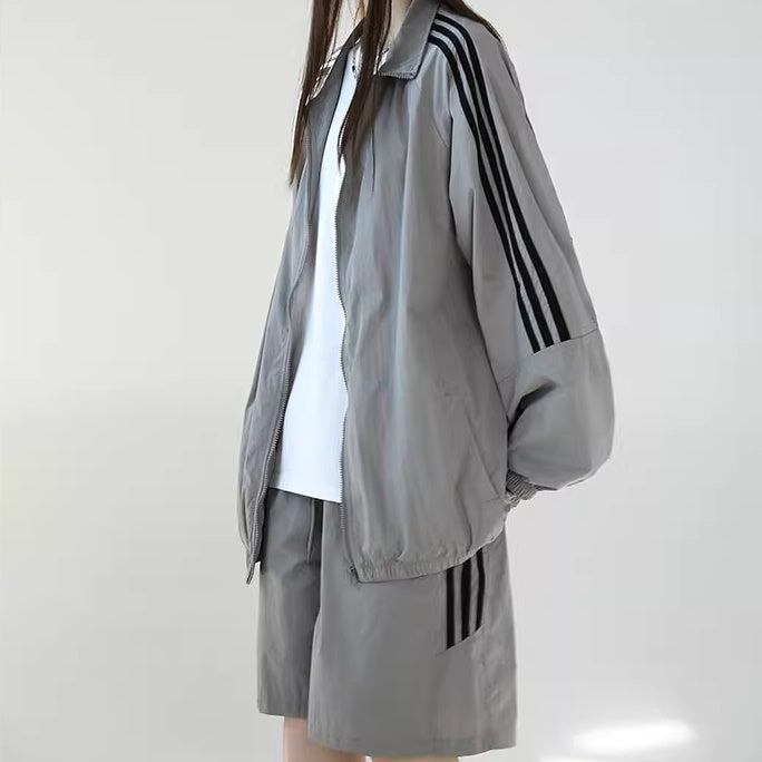 ジャージ セットアップ レディース 韓国 ファッション ナイロンジャージ ハーフパンツ サイドライン トラックジャケット 軽量 夏ジャージ スポーティー