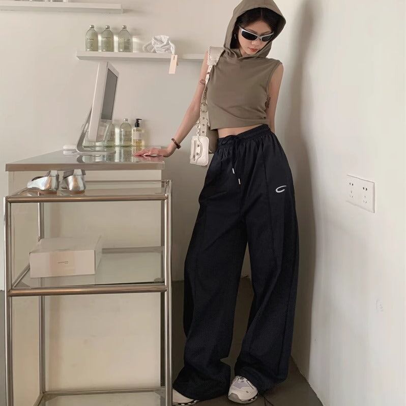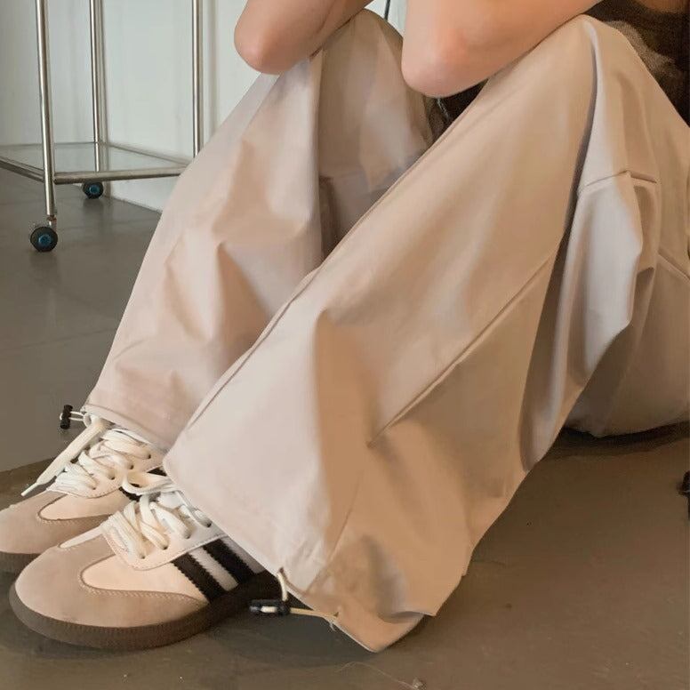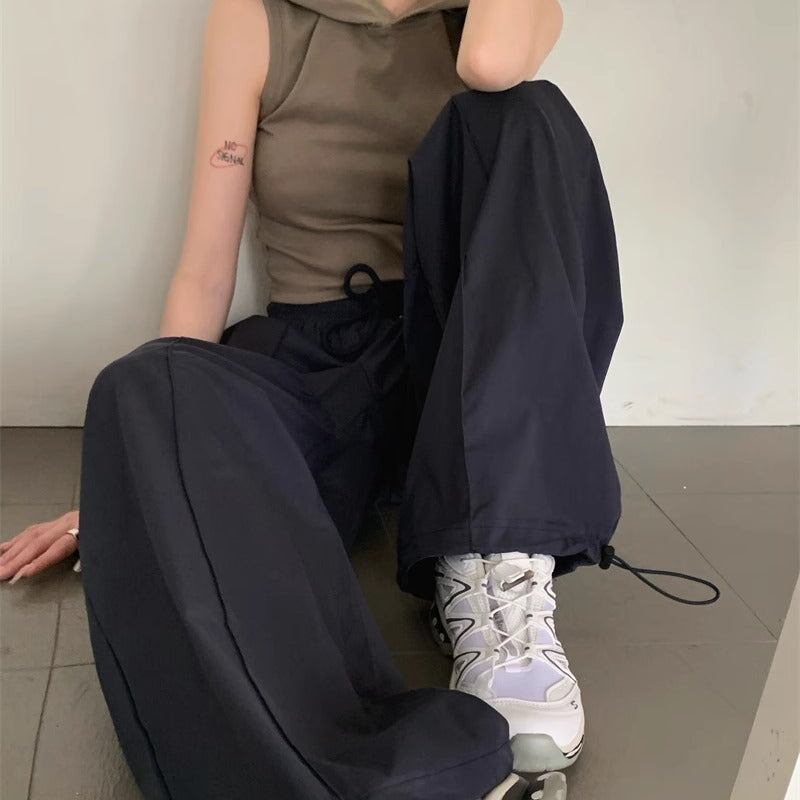 ジャージ パラシュート パンツ レディース 韓国 スポーツウェア ドロスト ワイド パラシュートパンツ