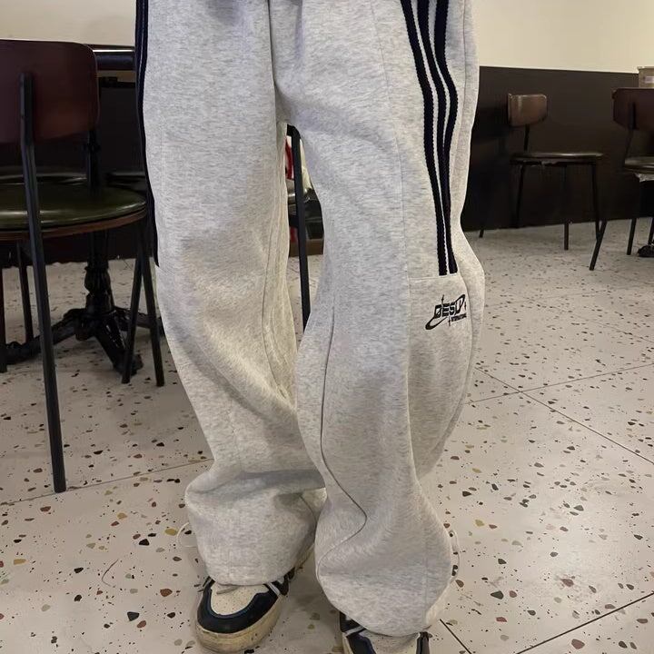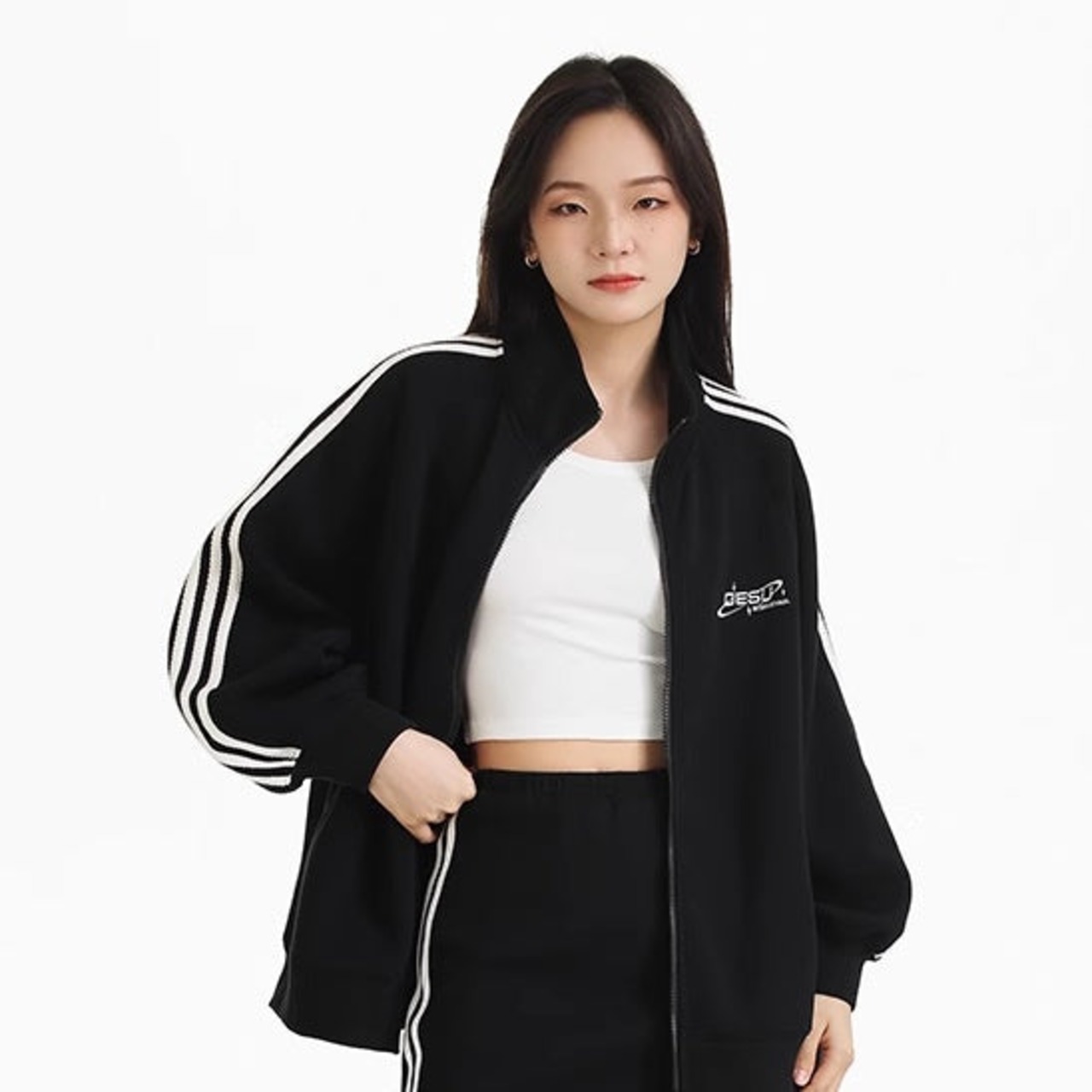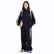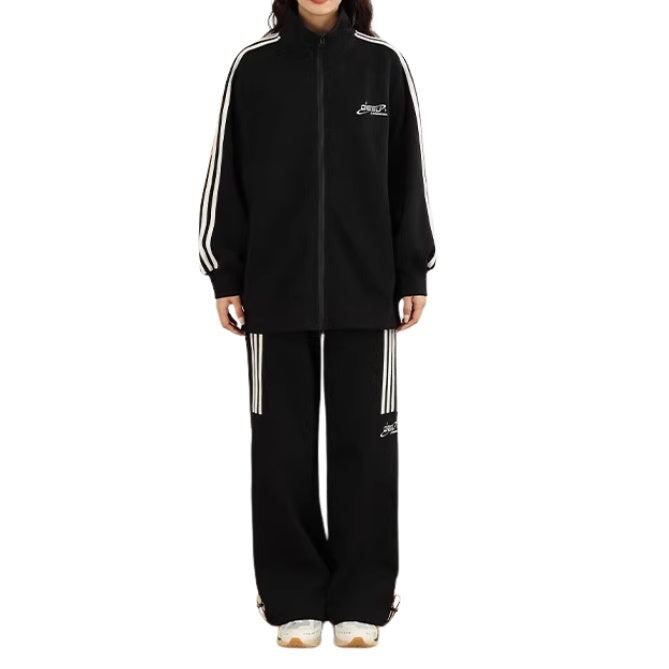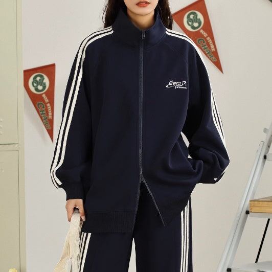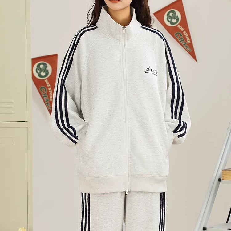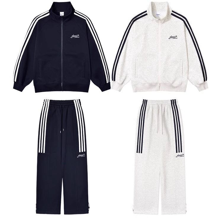 ジャージ セットアップ レディース 韓国 ファッション サイドライン ダブルジップ ロゴ 上下点セット ワイドパンツ ラインパンツ ラウンジ