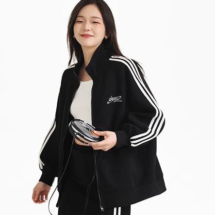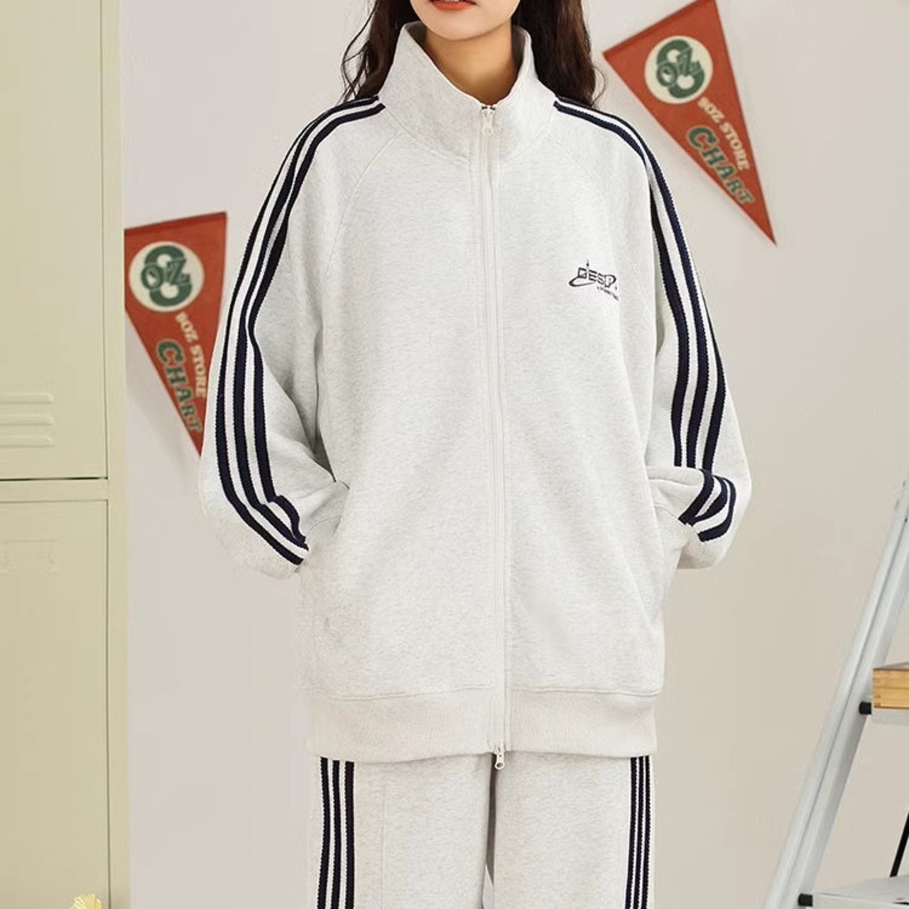 スウェット ジャージ セットアップ レディース 秋冬 裏起毛 韓国 ファッション サイドライン ダブルジップ ロゴ 上下セット