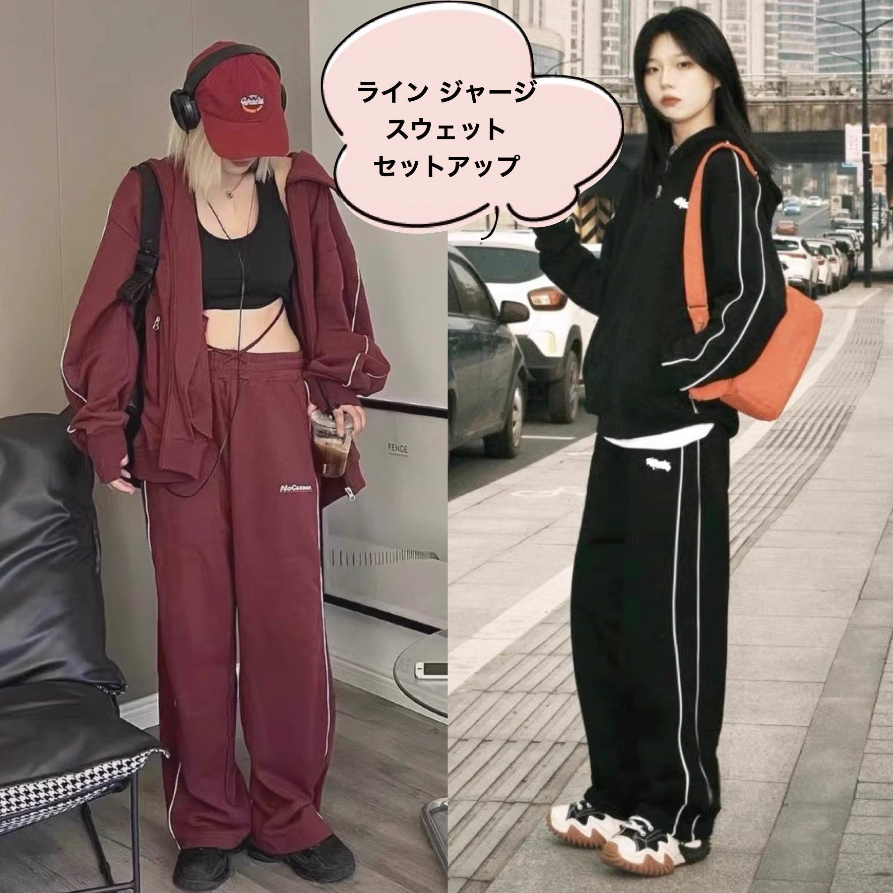 スウェット ジャージ セットアップ レディース 韓国 ファッション ジップ ジャケット ワイドパンツ 2点セット