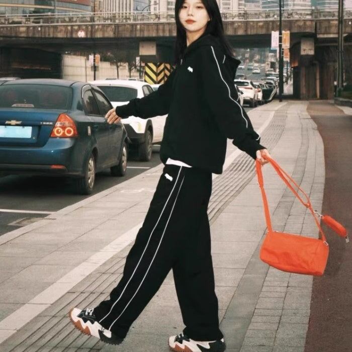 ジャージセットアップ レディース 韓国 ファッション ジップジャケット ラインジャージ ラインパンツ ジップジャケット トラックトップ 2点セット