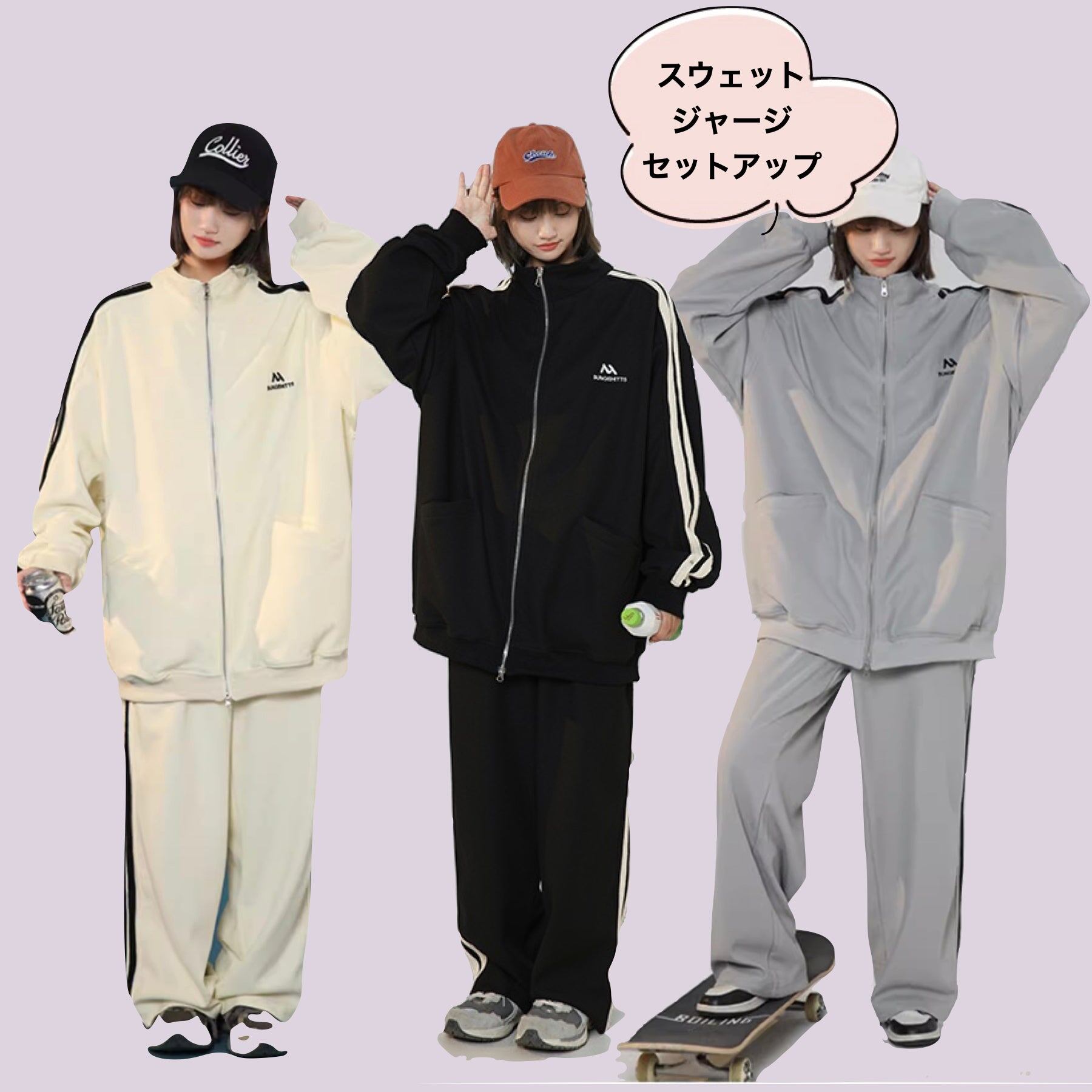 スウェット ジャージ セットアップ レディース 韓国 ファッション ビッグシルエット スポーツ ジャージ セットアップ 上下セット