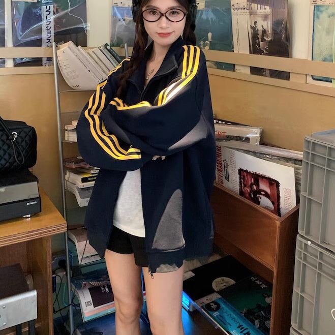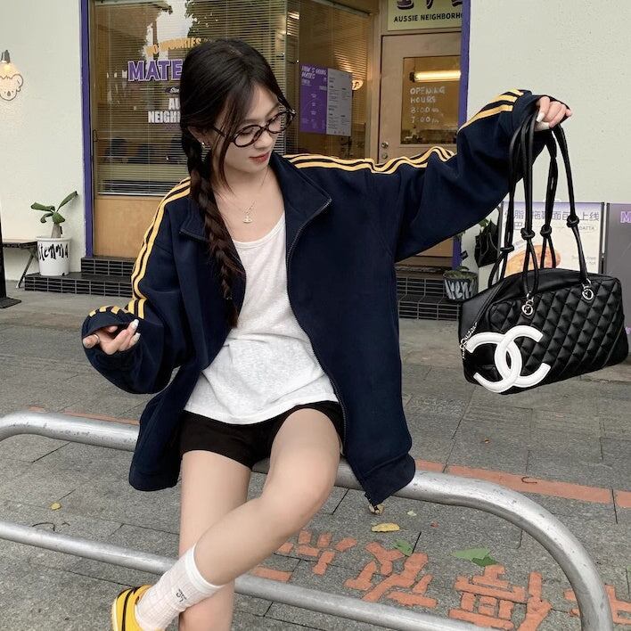 スウェット ジャージ トラック ジャケット レディース 韓国 ファッション ジップアップ ブルゾン ジャケット サイドライン