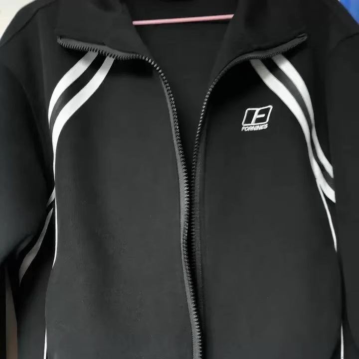 ジップジャケット ジャージ レディース 韓国 ファッション トラックトップ バイカラー ロゴ ラグラン モノトーン 黒 トップス