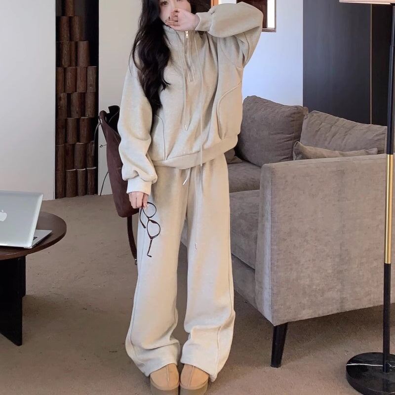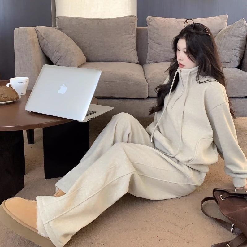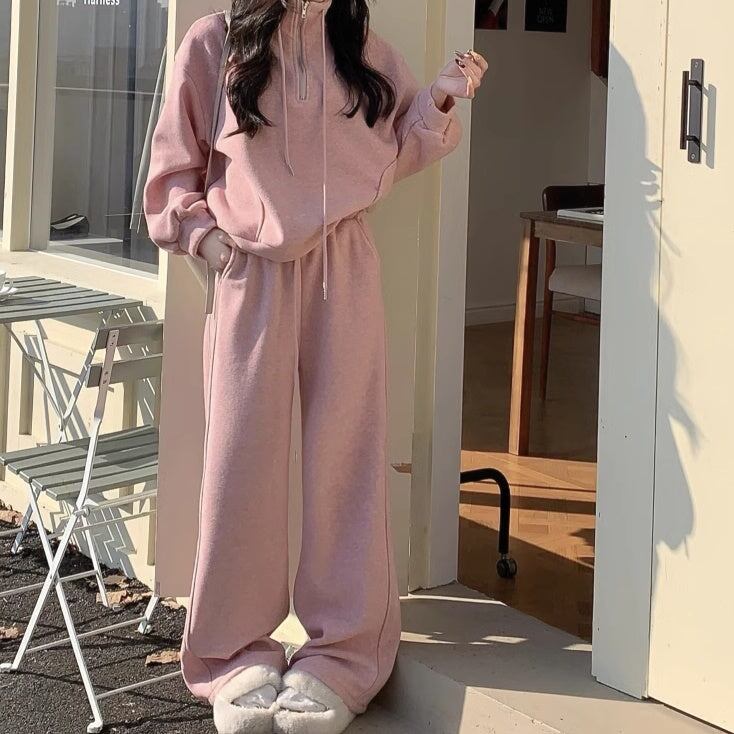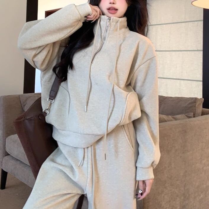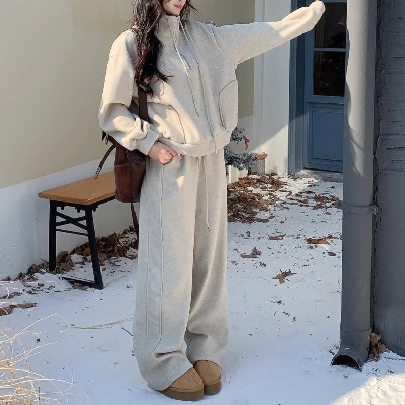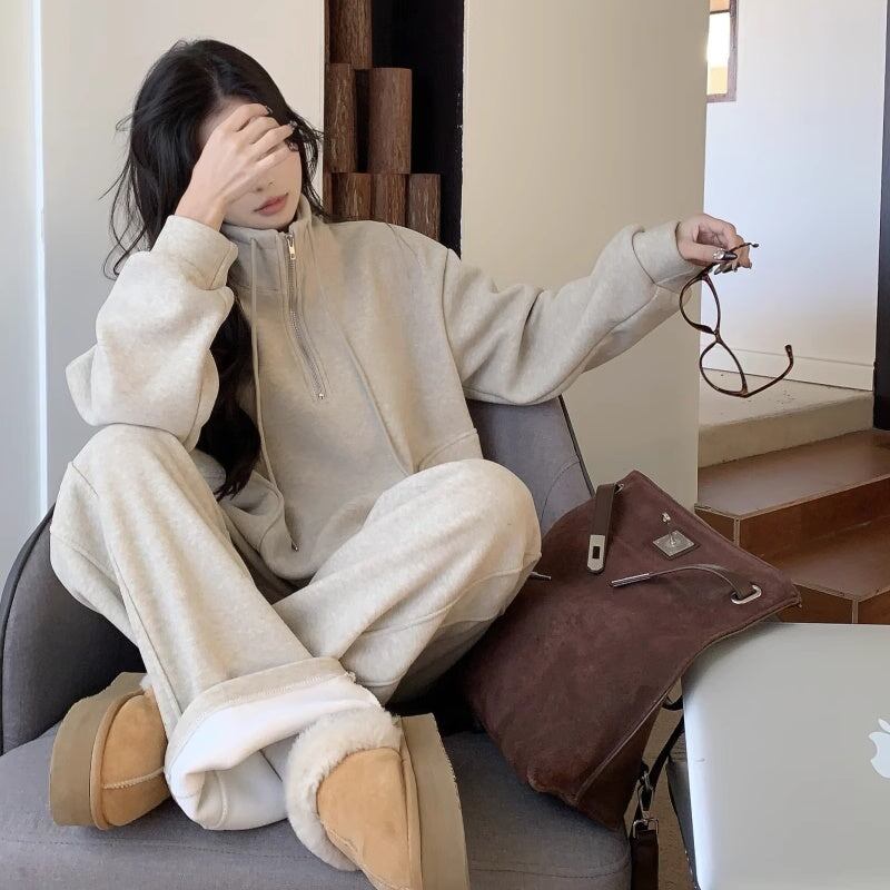 セットアップ スウェット レディース 韓国 ファッション おしゃれ 厚手 冬 トレーナー ロングパンツ 上下2点セット オーバーサイズ