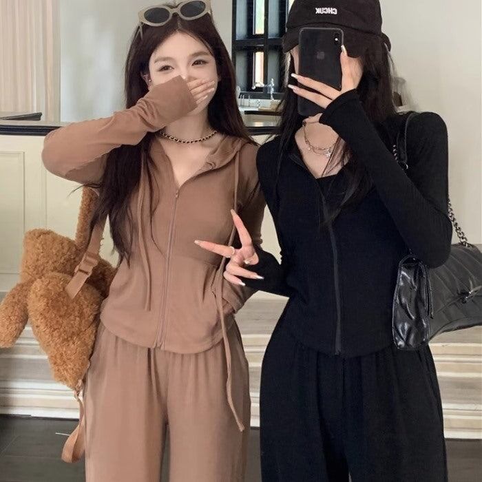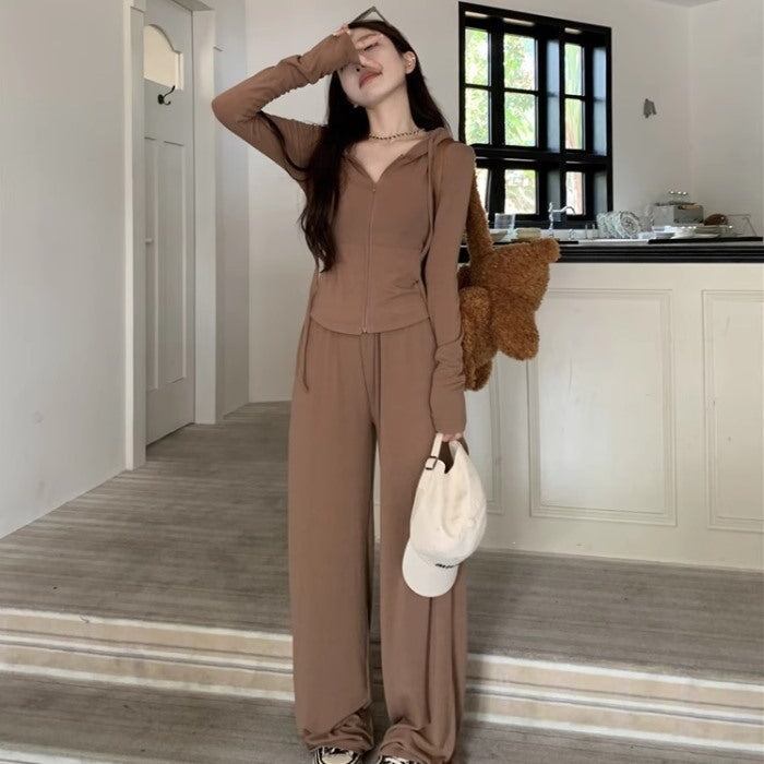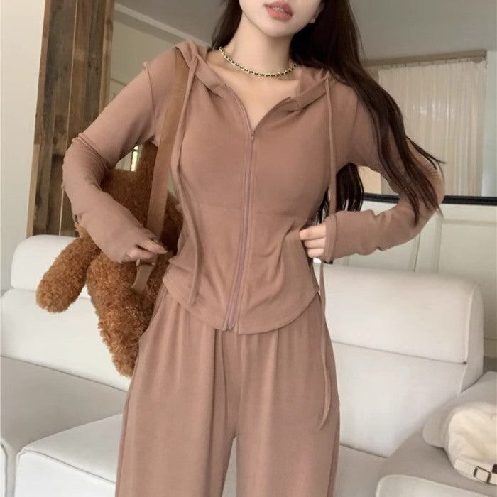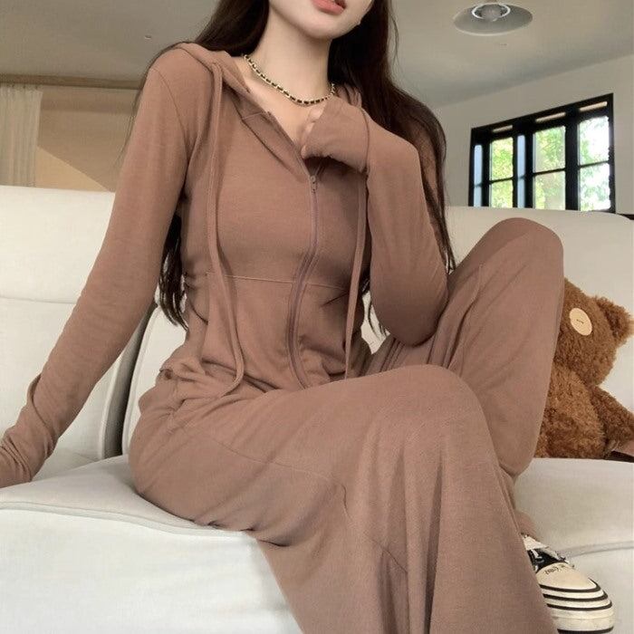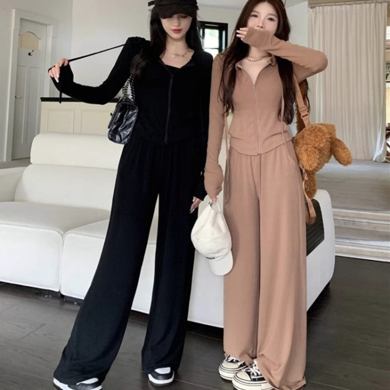 セットアップ ジップパーカー レディース 韓国 ファッション ストレッチ 2点セット上下 長袖 モップパンツ ラウンジ ヨガ ウエストシェイプ