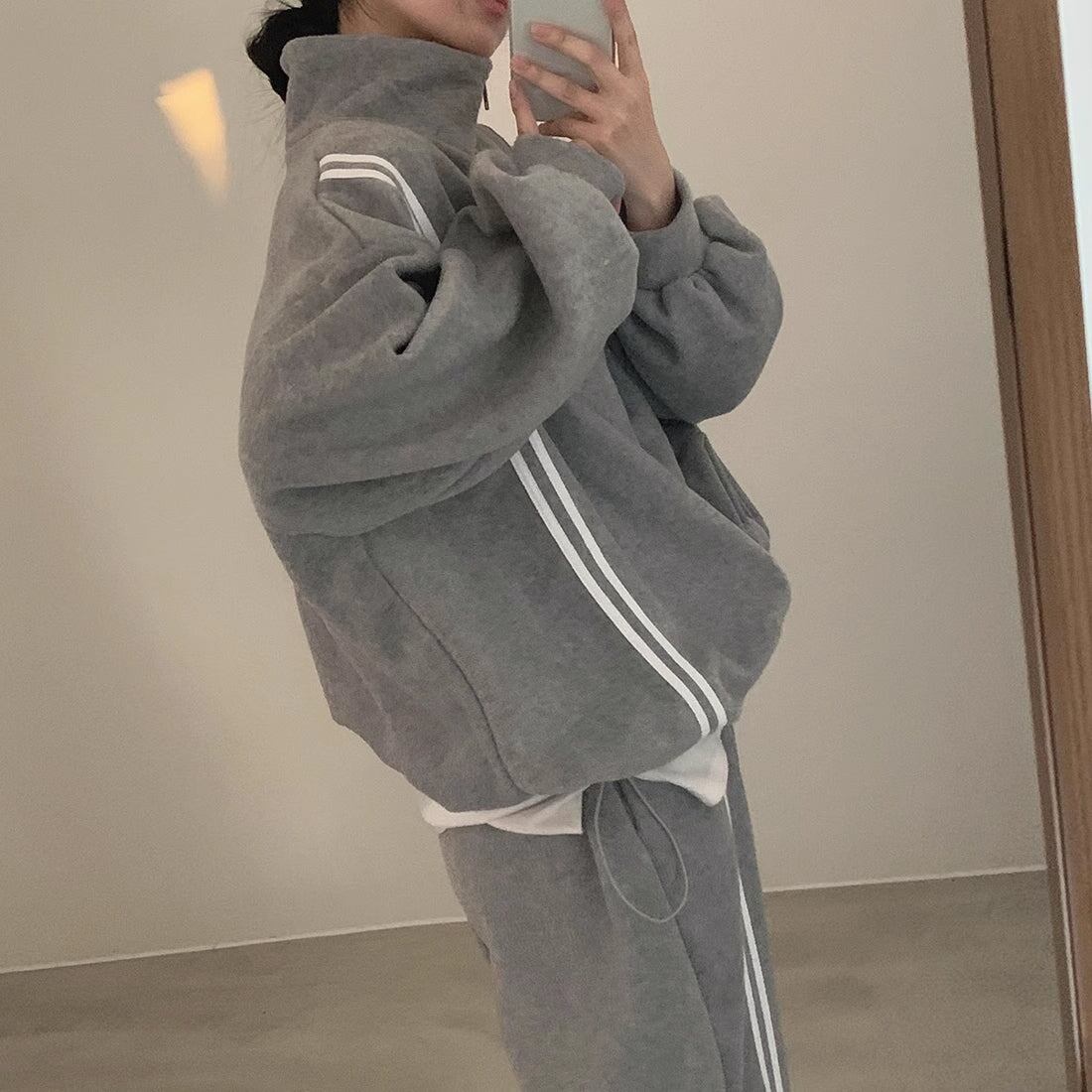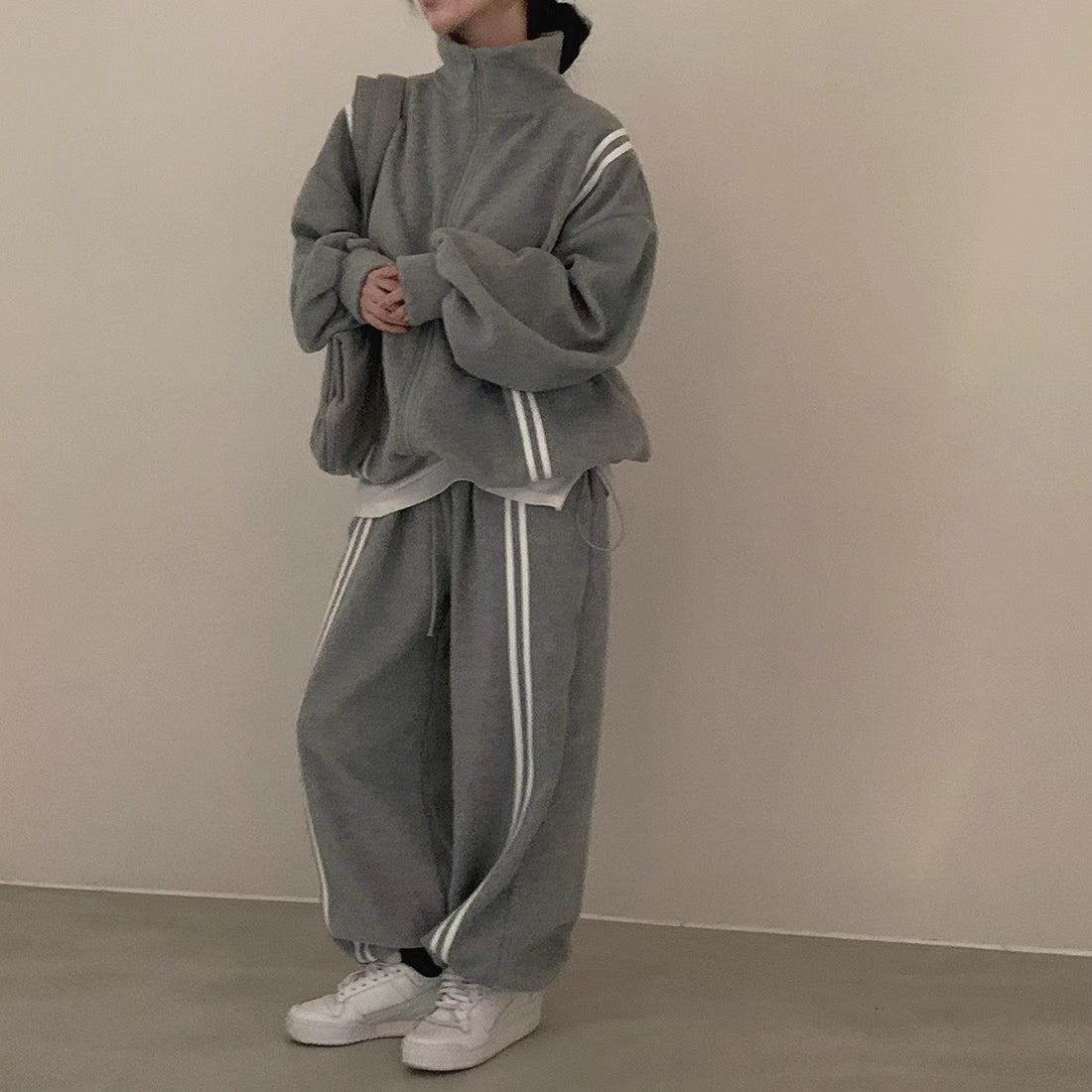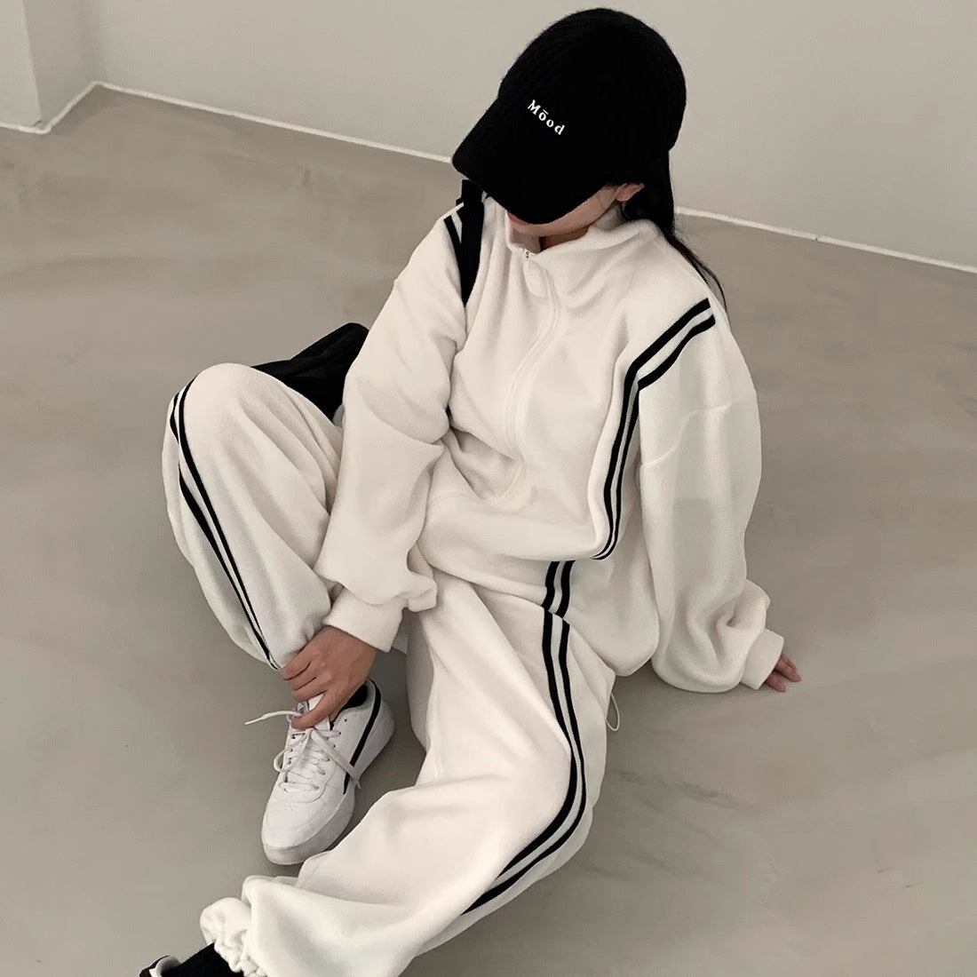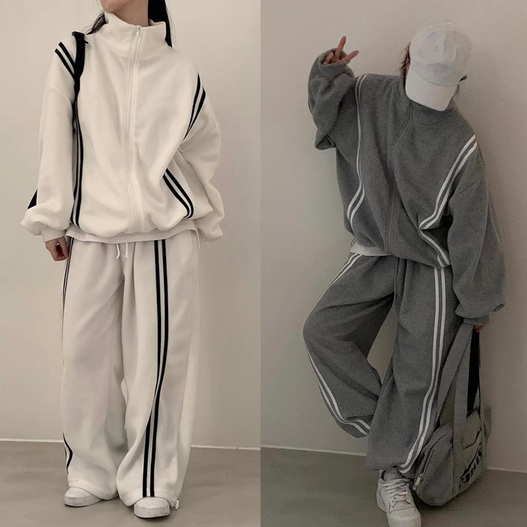 スウェット セットアップ ジャージ レディース 韓国 ファッション 冬 裏起毛 トラックジャケット ワイドパンツ 上下セット