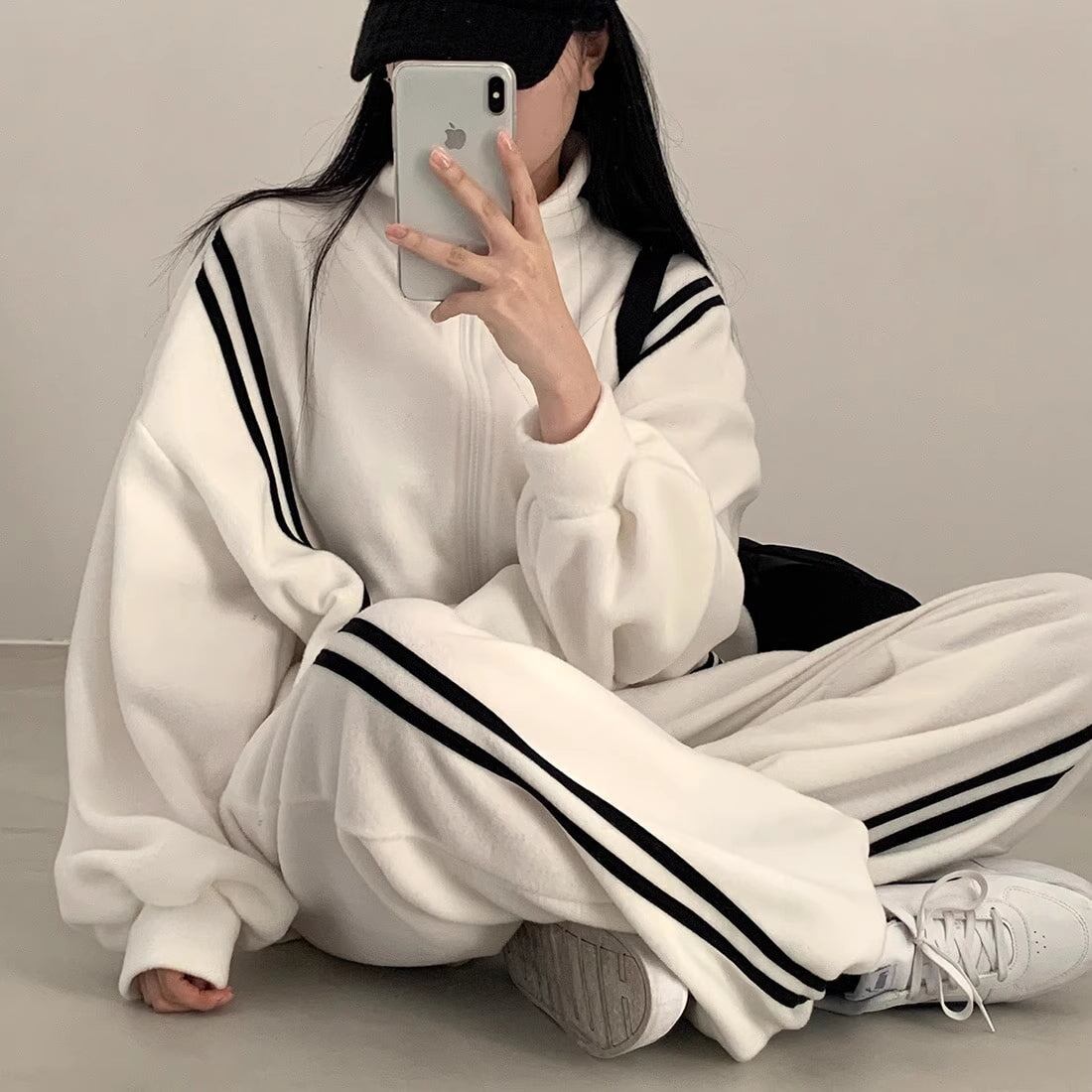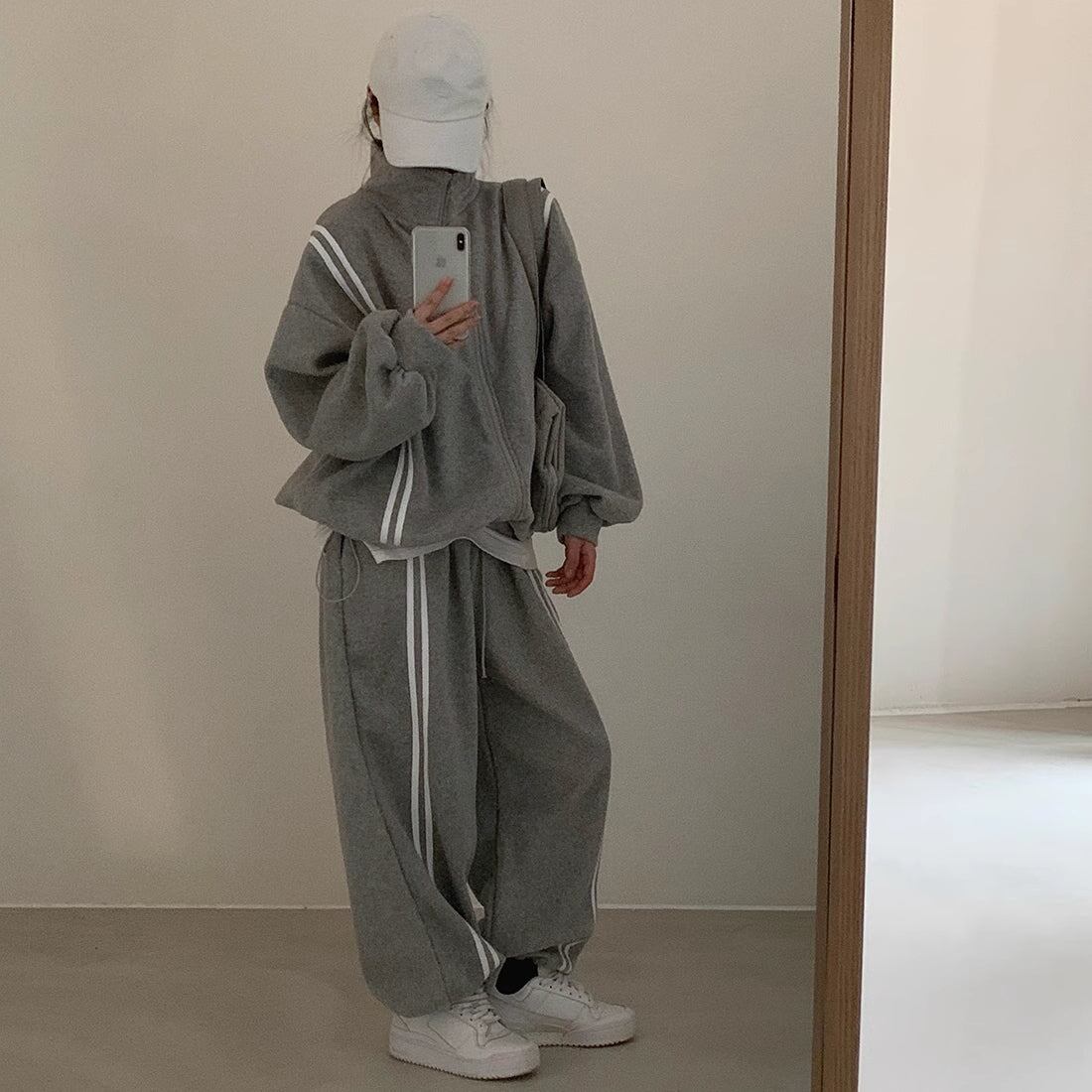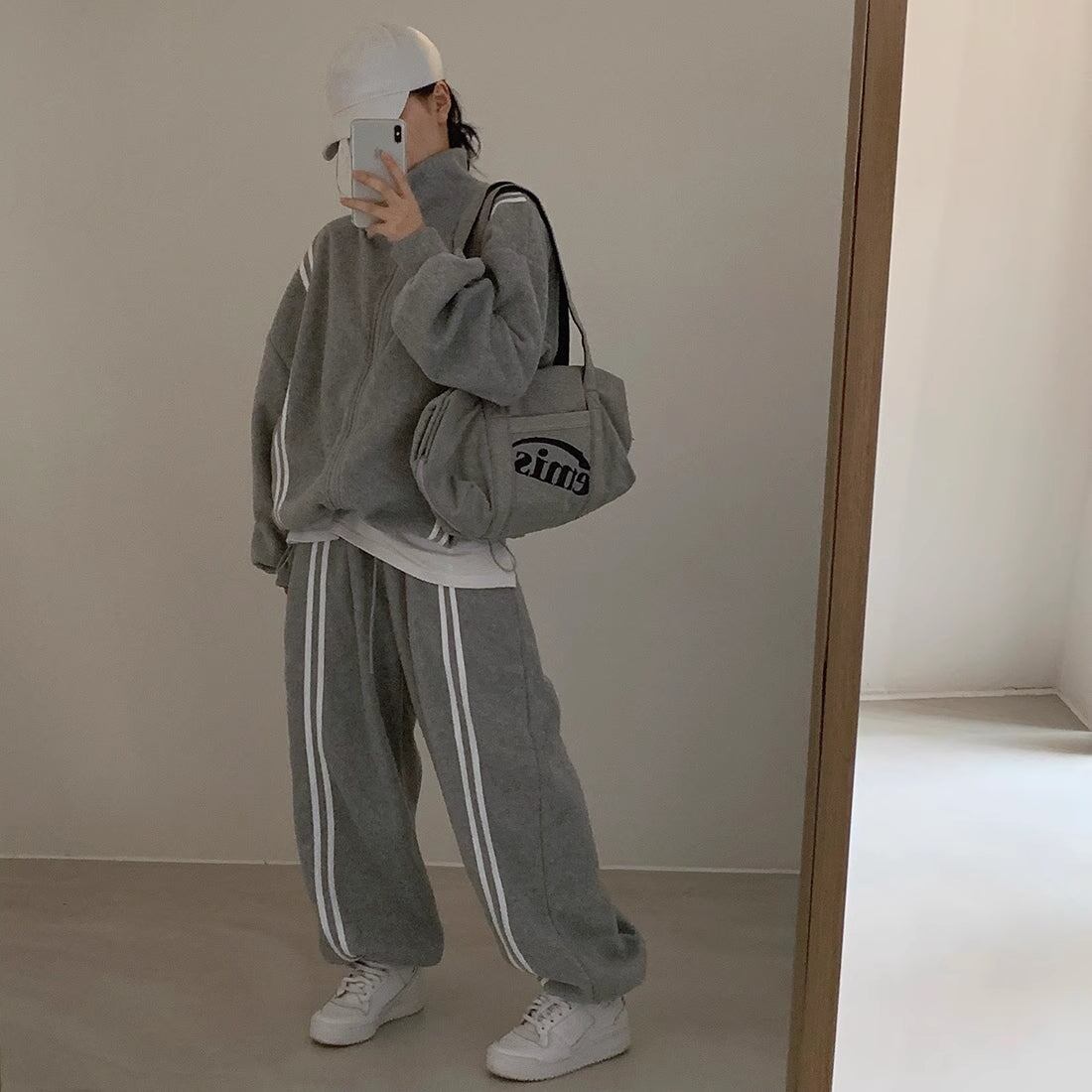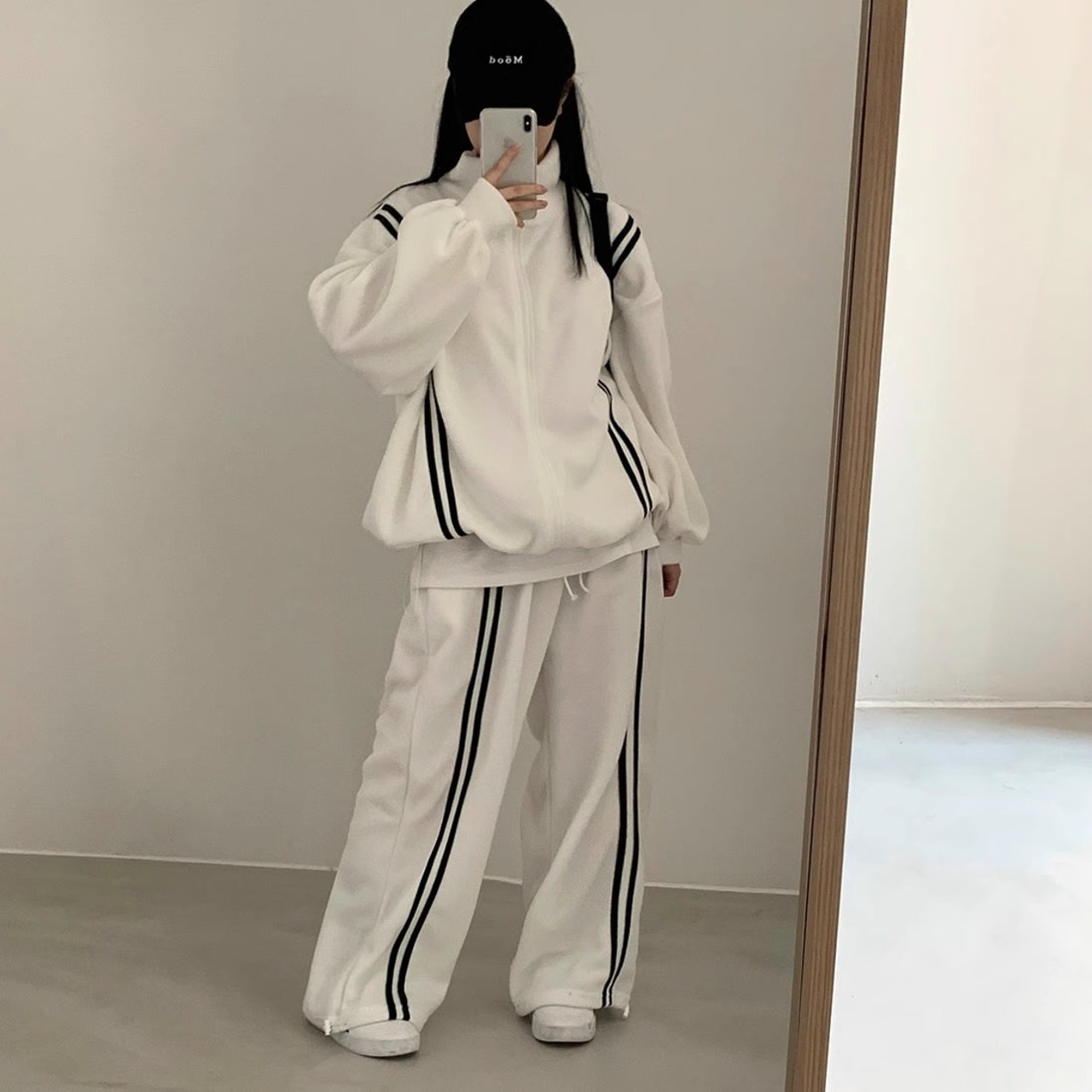 スウェット セットアップ ジャージ レディース 韓国 ファッション 冬 裏起毛 トラックジャケット ワイドパンツ 上下セット