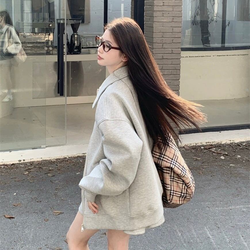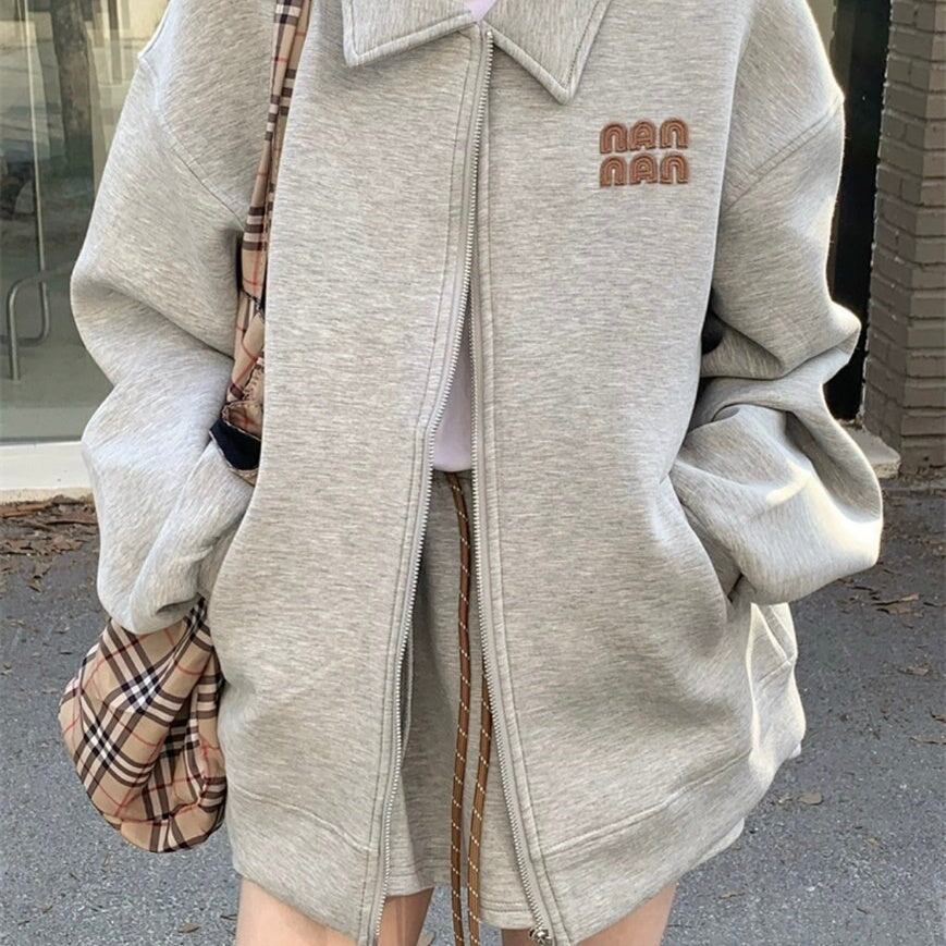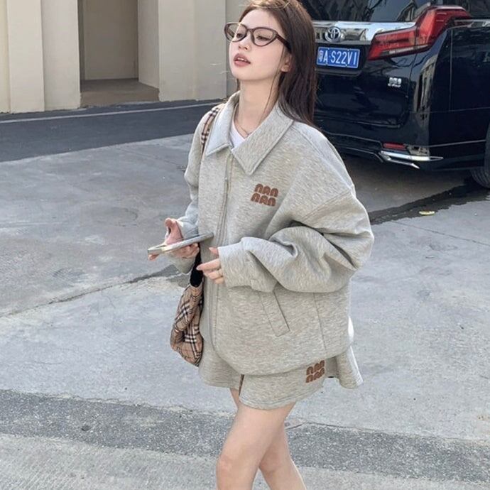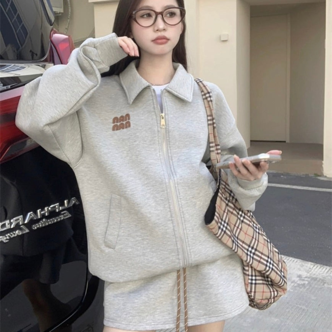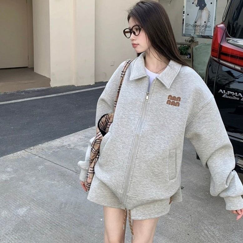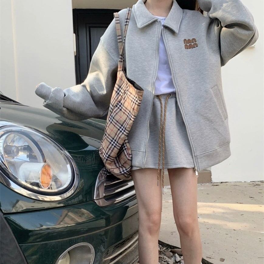 セットアップ スウェット スカート レディース 韓国 ファッション ジップジャケット ミニスカート ポロ襟ジャケット オーバーサイズ グレースウェット 2点上下セット