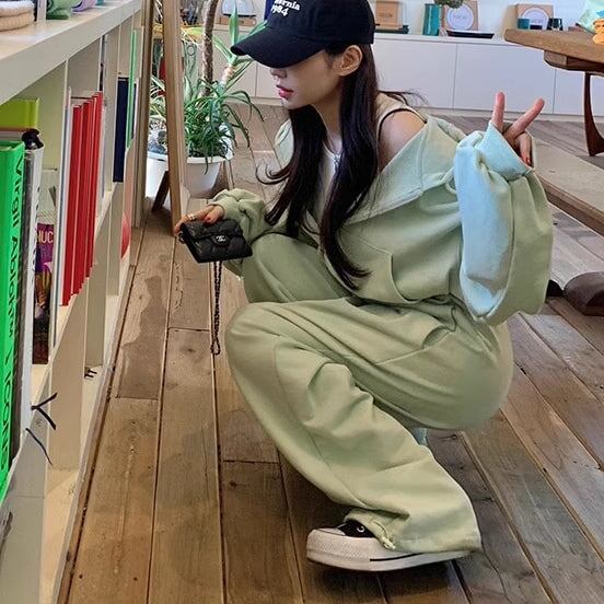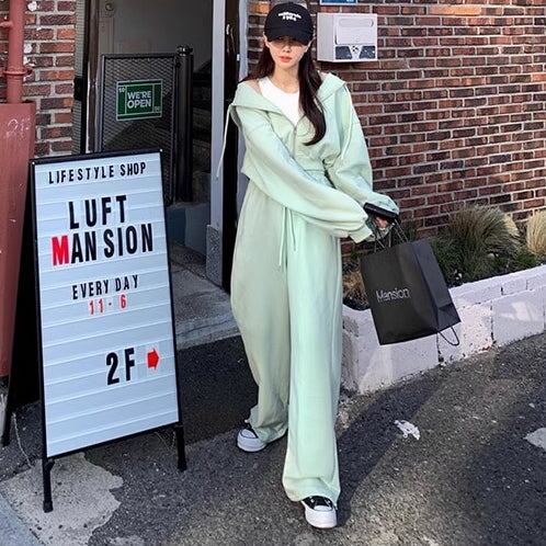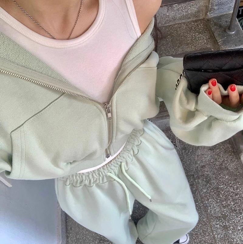 スウェットセットアップ レディース 韓国 ファッション クロップドパーカー ジョガーパンツ ジップパーカー 2点上下セット 秋冬 脚長