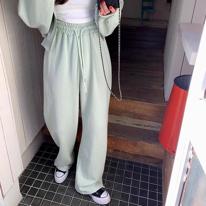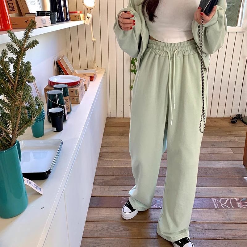 スウェット セットアップ レディース クロップ パーカー 上下セット 韓国 ファッション ジップパーカー ワイドパンツ セット