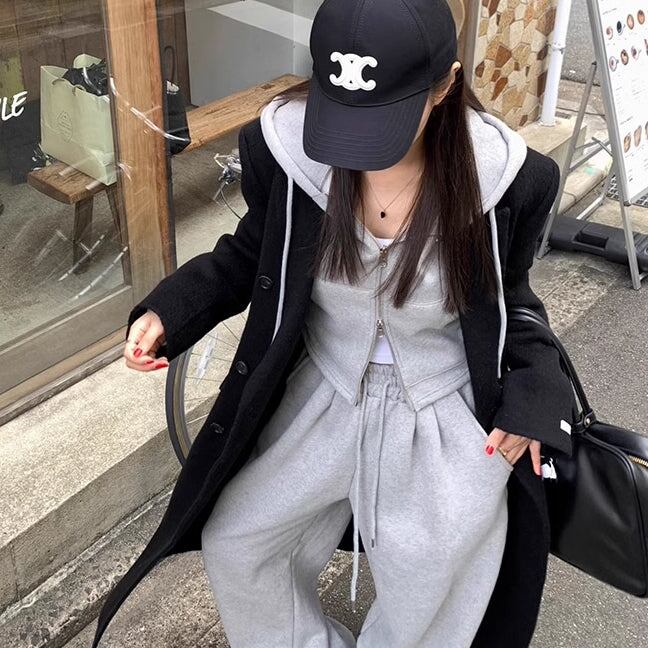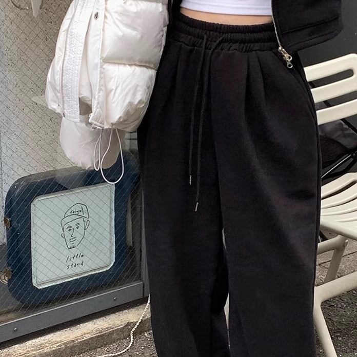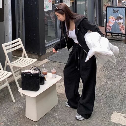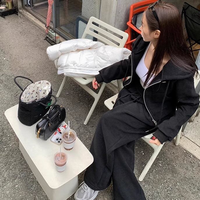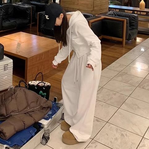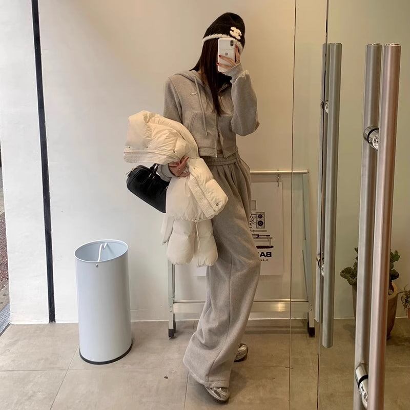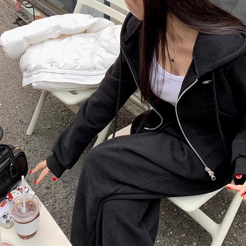 スウェット セットアップ レディース クロップド ジップ パーカー ワイドパンツ 上下セット 韓国 ファッション ショートパーカー ダブルジップ