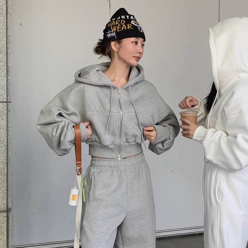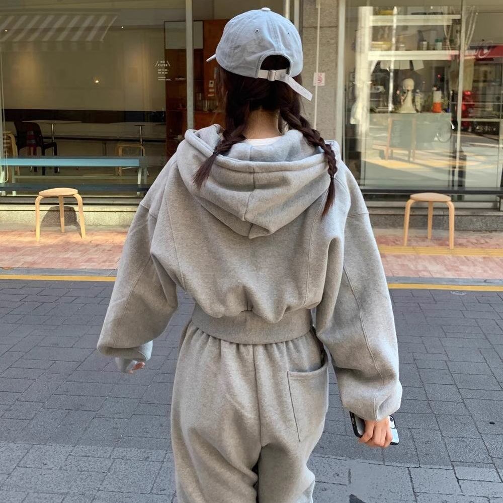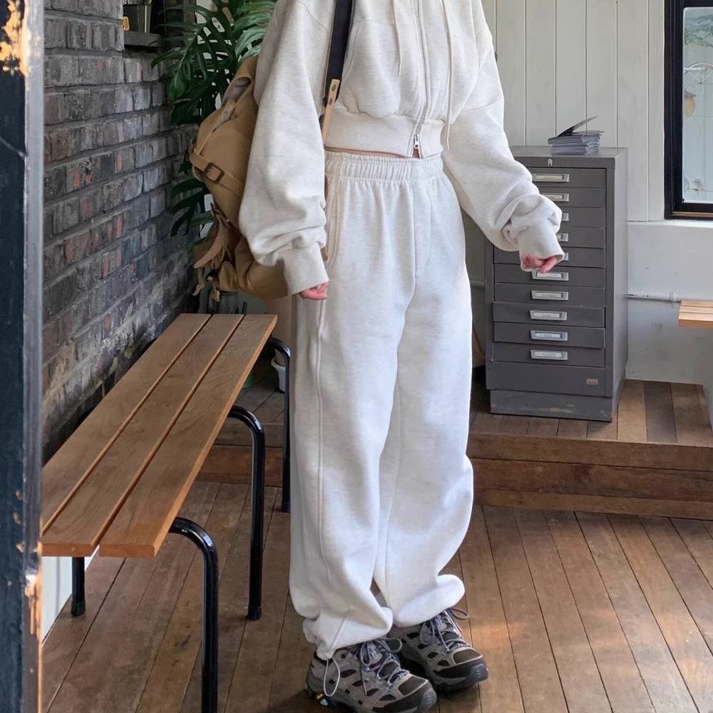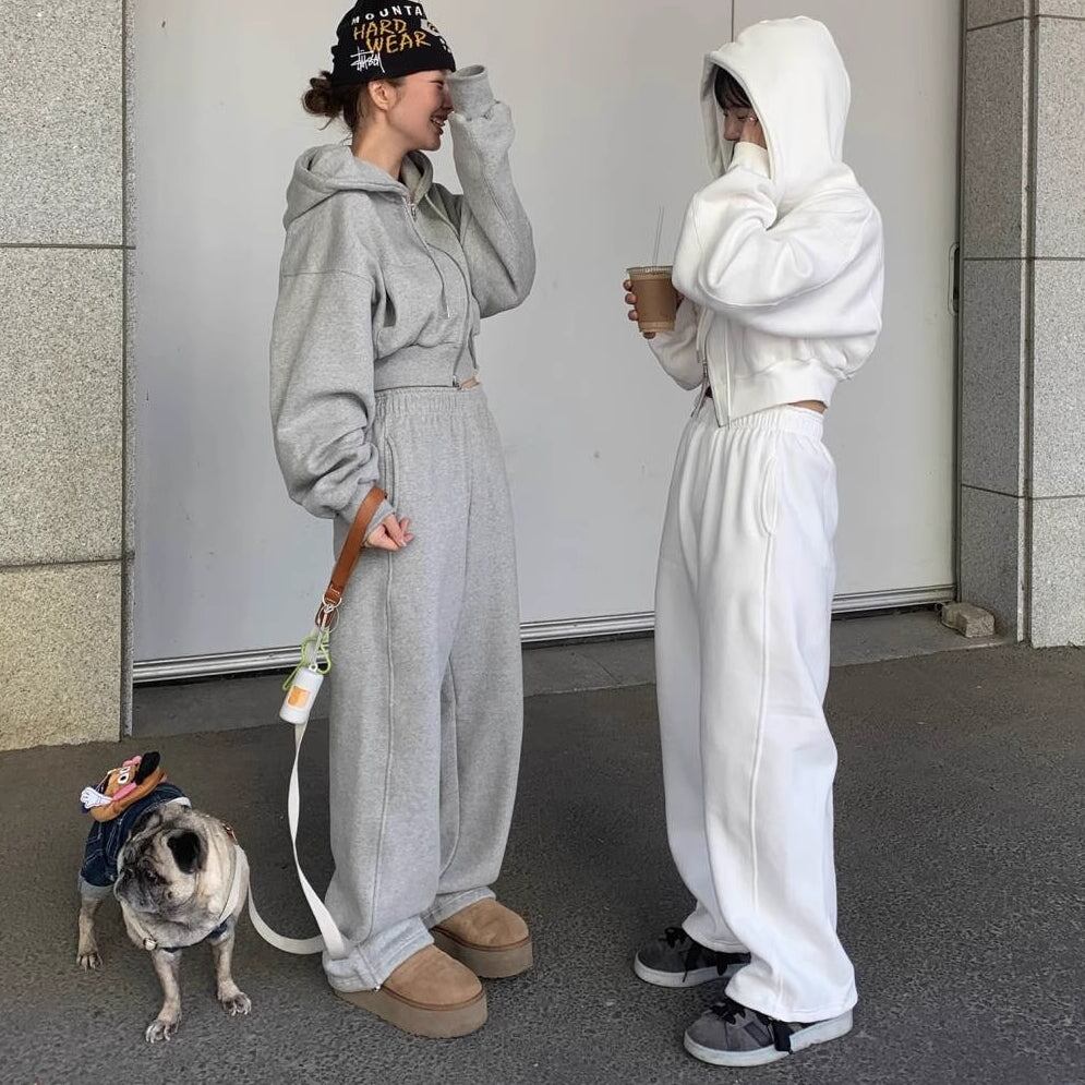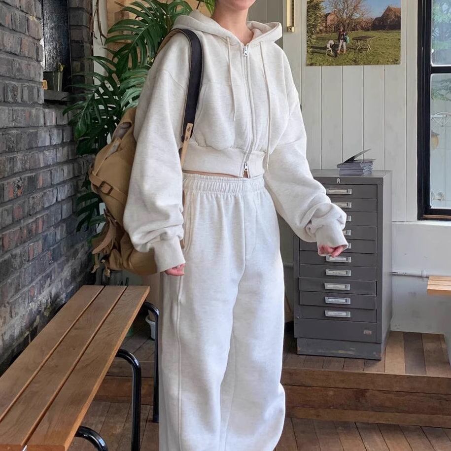 スウェット セットアップ レディース クロップド パーカー スウェットパンツ 上下セット 韓国 ファッション ジップアップパーカー ワイドパンツ
