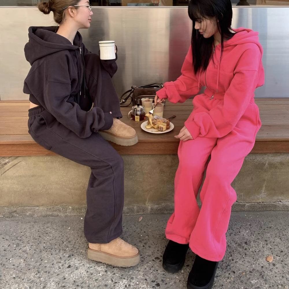 スウェットセットアップ レディース 韓国 ファッション ジップパーカー ジョガーパンツ ロングパンツ おしゃれ Wジップ