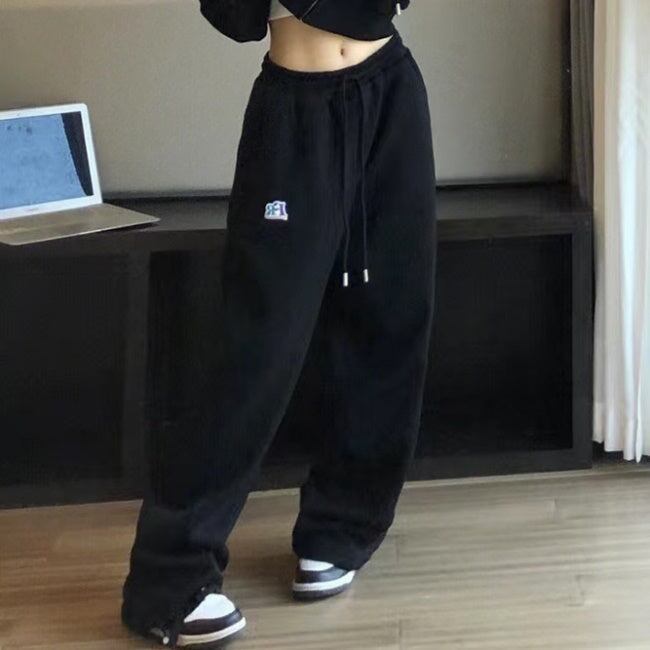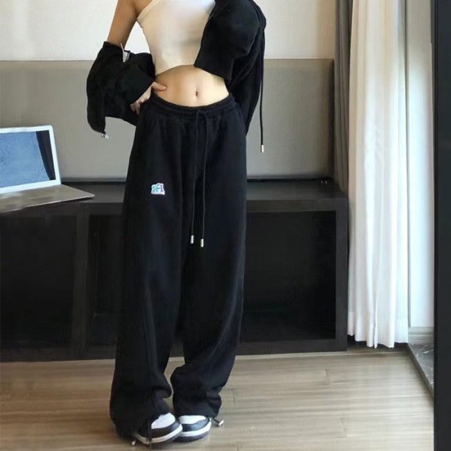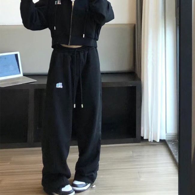 黒ジャージ セットアップ レディース 韓国 ファッション ショート クロップド ワンポイントロゴ トラックトップ 裾コード ウエストゴム