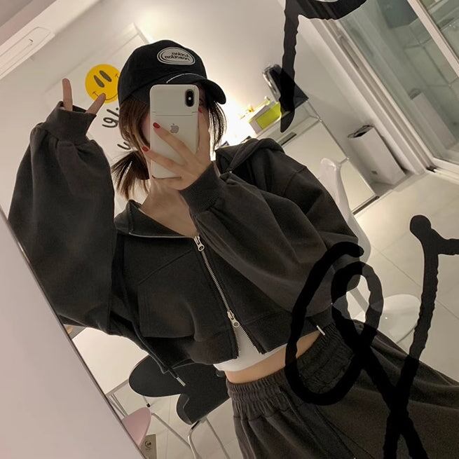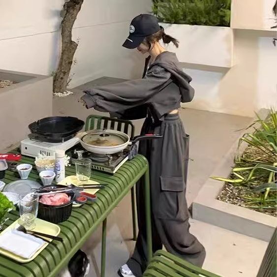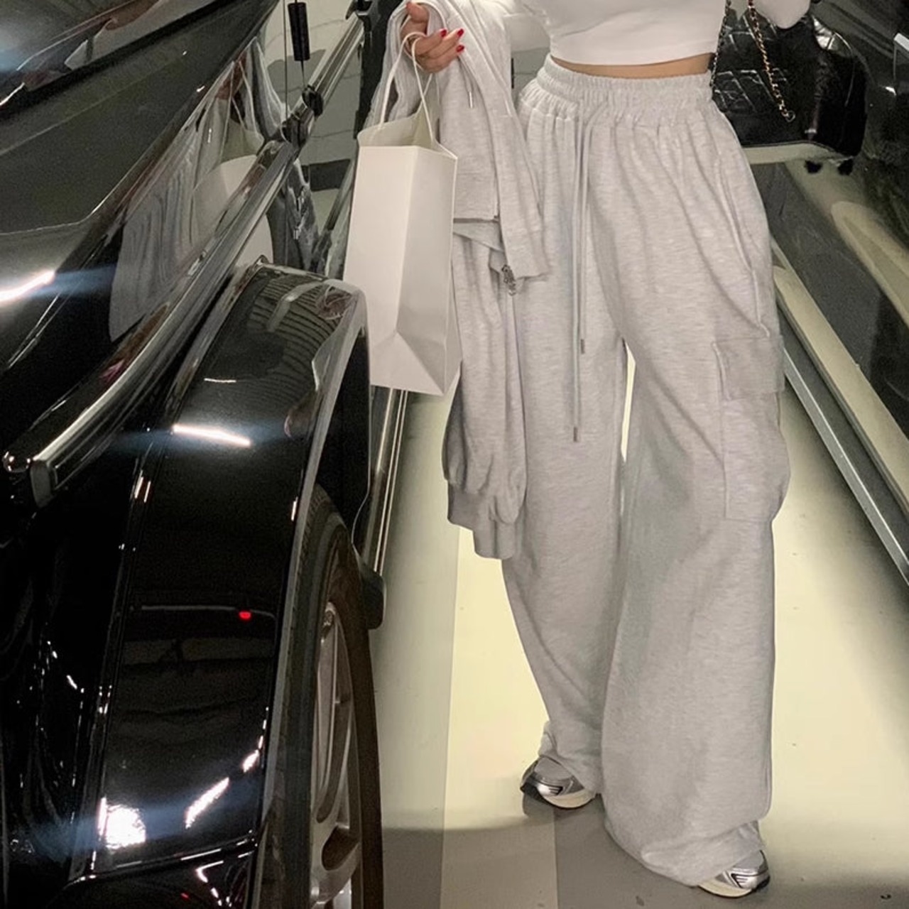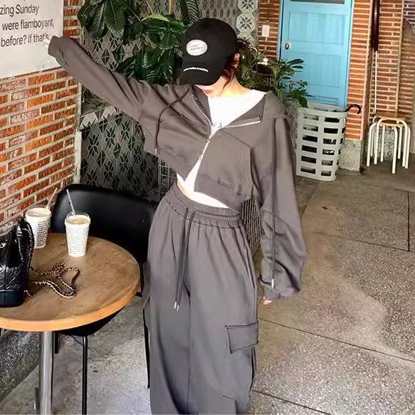 セットアップ スウェット クロップパーカー サイドポケットパンツ カーゴ ワイドパンツ スウェットパンツ パーカーセット 上下2点? ダブルジップパーカー