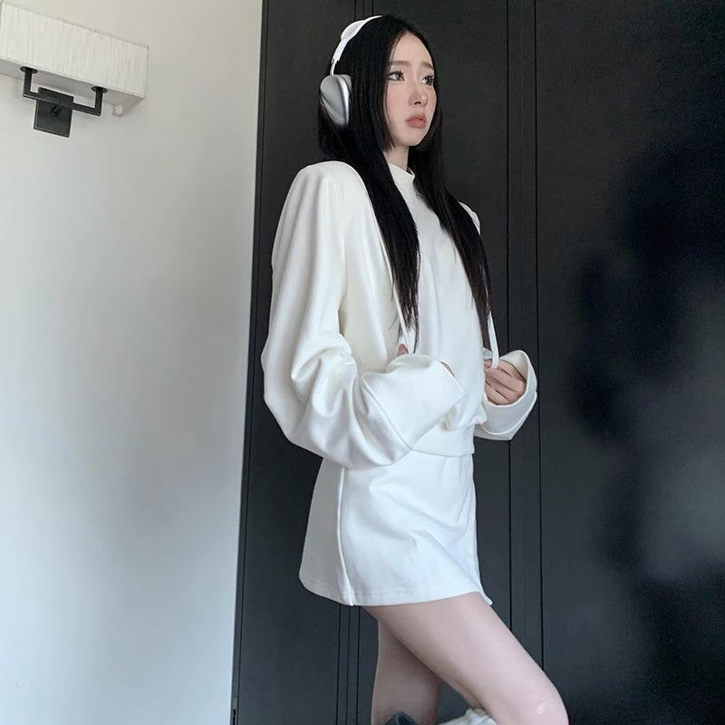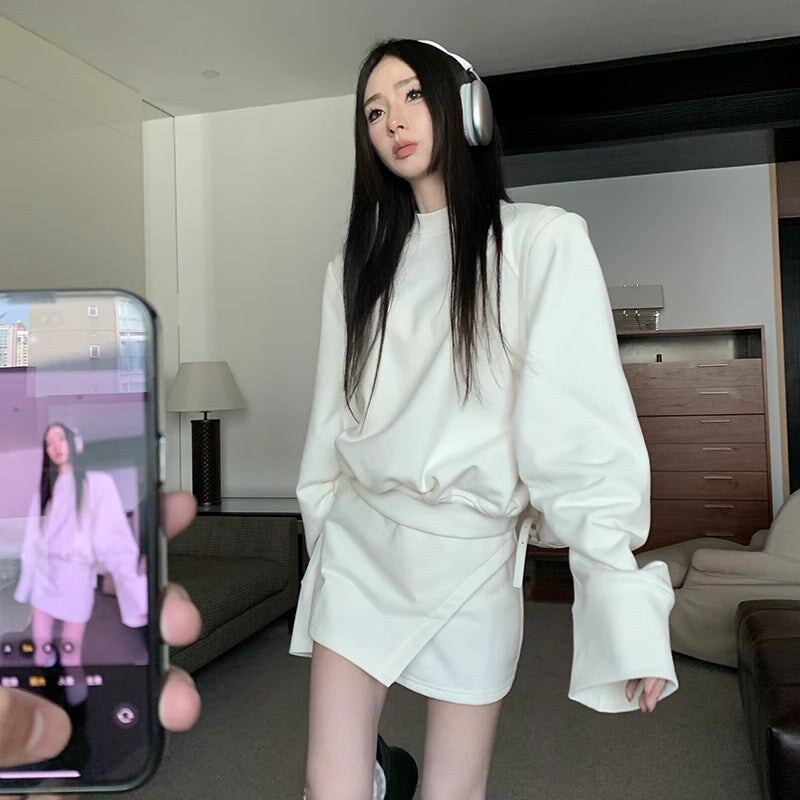 セットアップスウェット スカート レディース 韓国 ファッション モックネック トレーナー ボリューム袖 スリットスカート ミニスカート ミニマム YK2 無地 上下セット