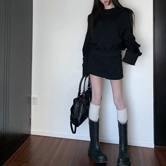 スウェット セットアップ レディース スカート 上下セット 韓国 ファッション モックネック トレーナー ボリューム袖 スリットス ミニスカート 無地