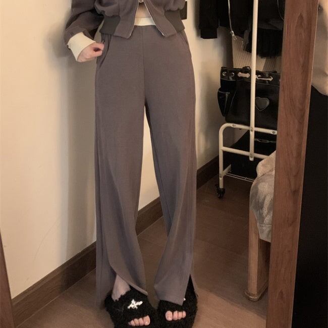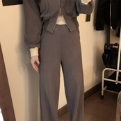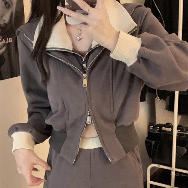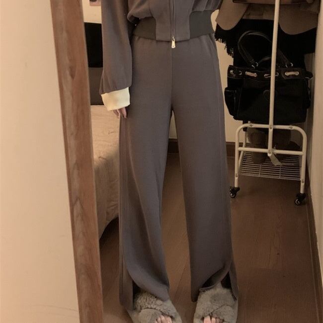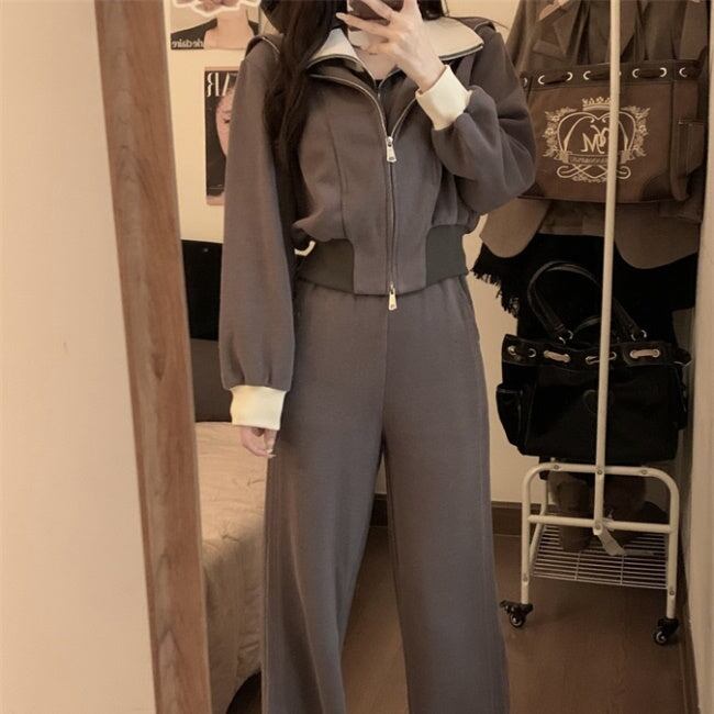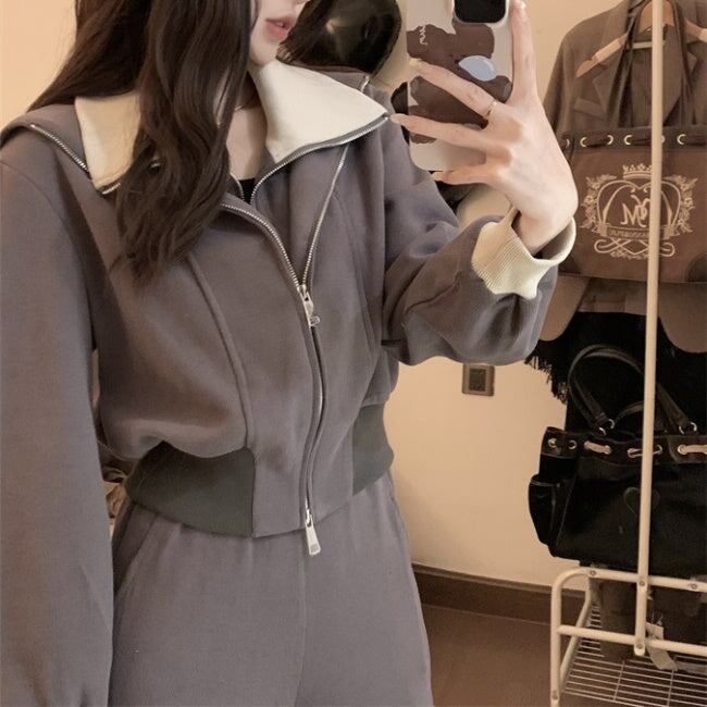 スウェット セットアップ レディース ダブルジップ クロップド ジャケット ワイドパンツ 上下セット 韓国 ファッション スウェット ジャージ