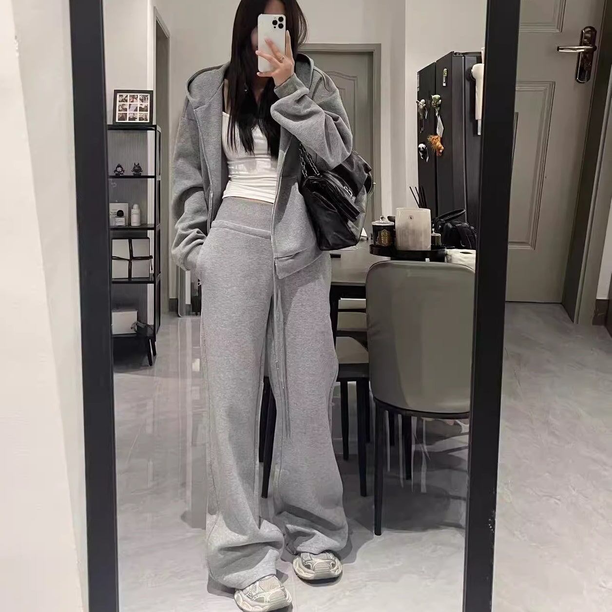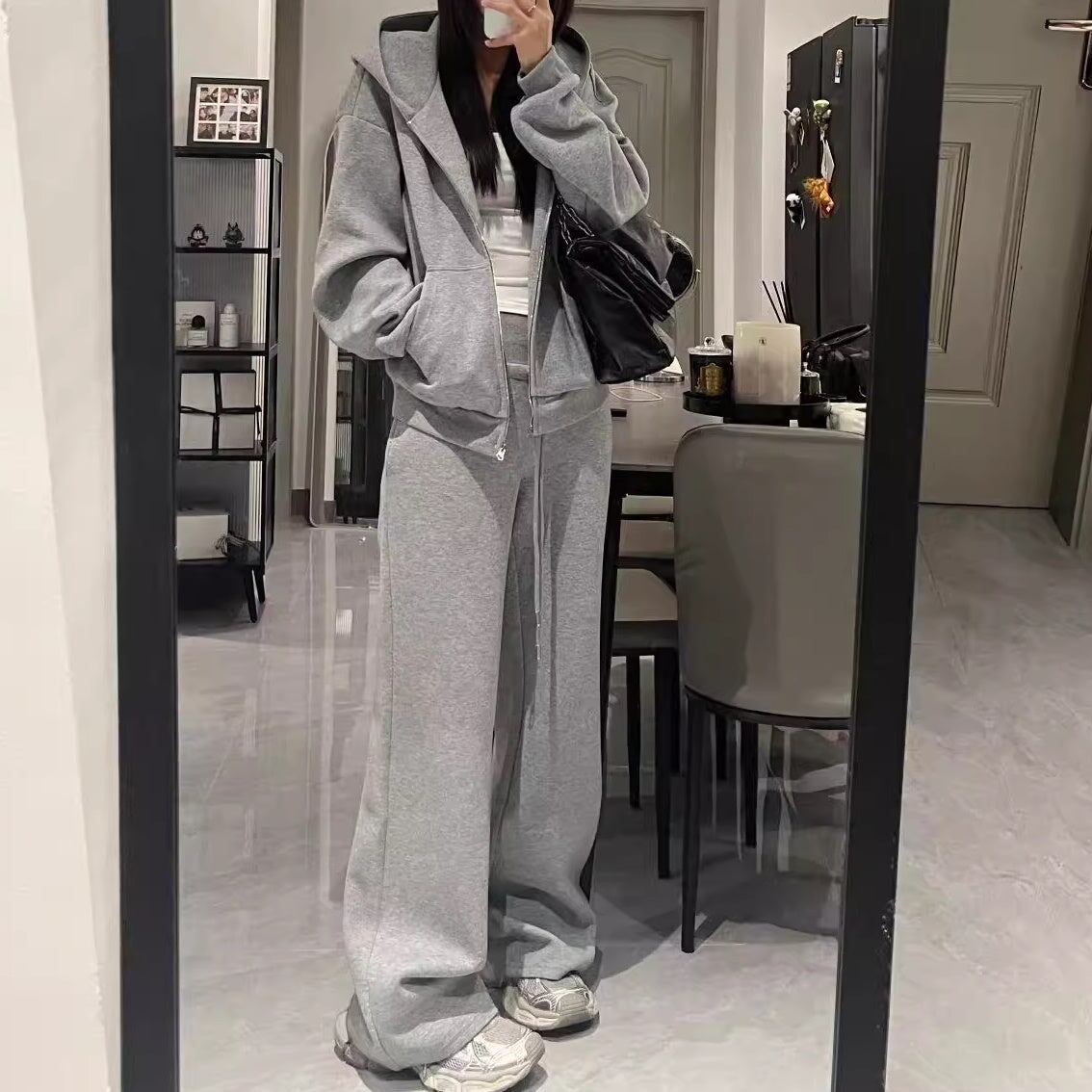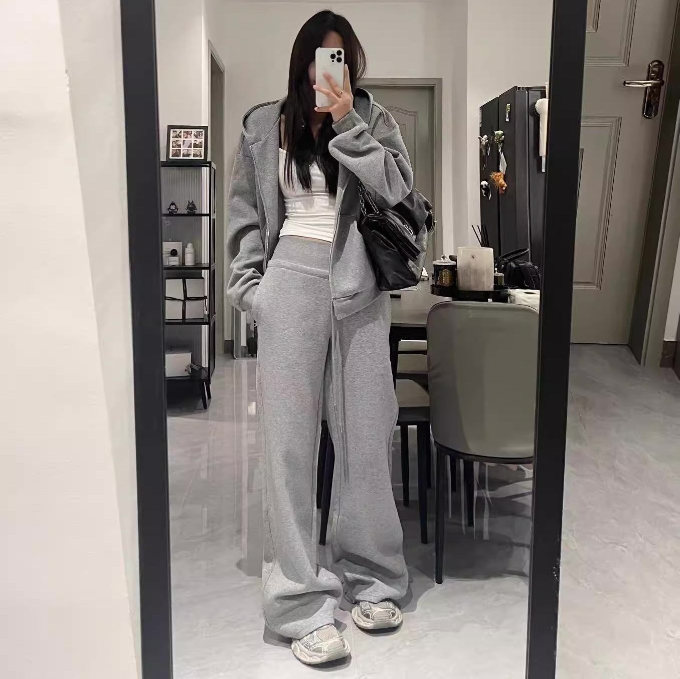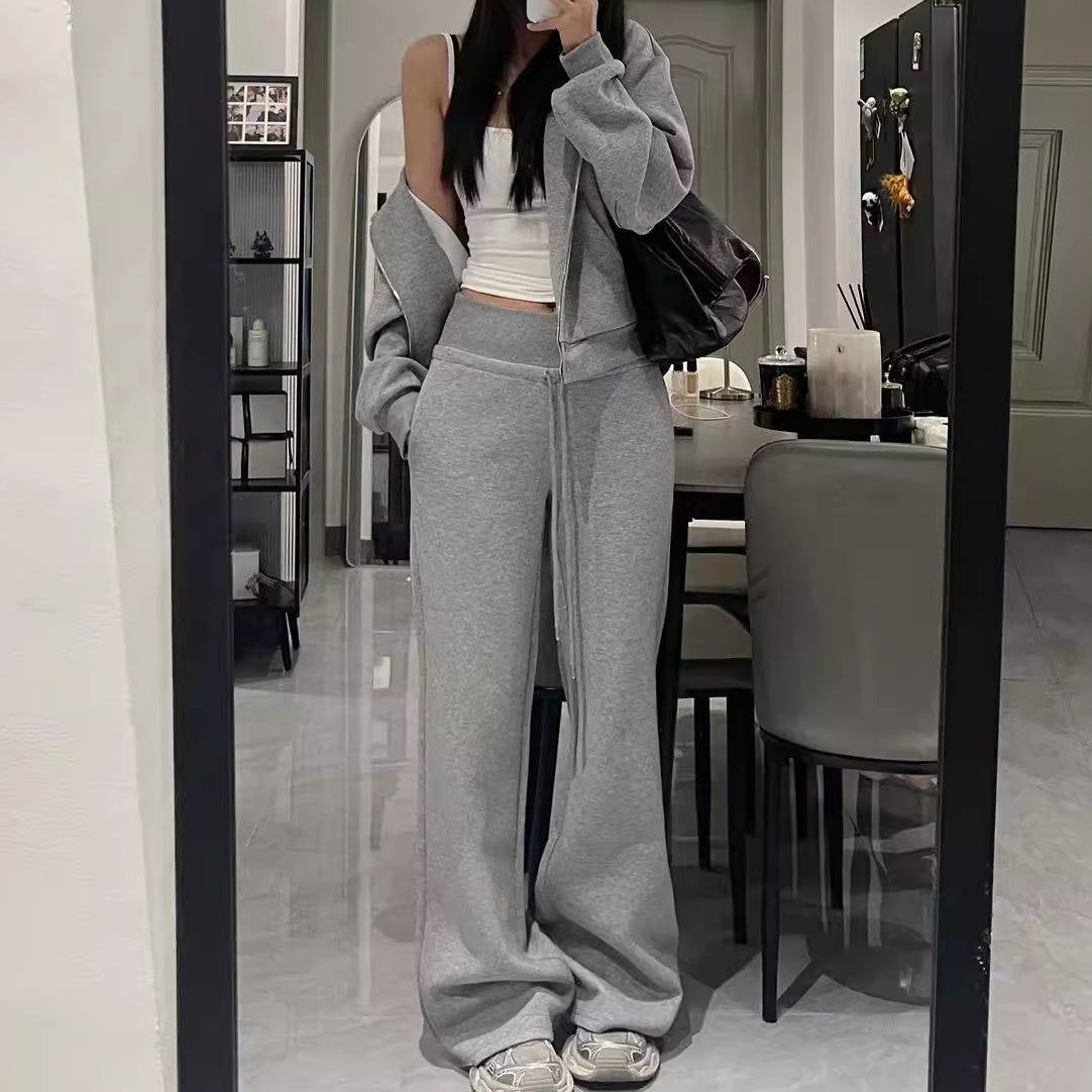 スウェットセットアップ レディース 韓国 ファッション ワイドパンツ ジップパーカー 定番 ベーシック ラウンジ おしゃれ