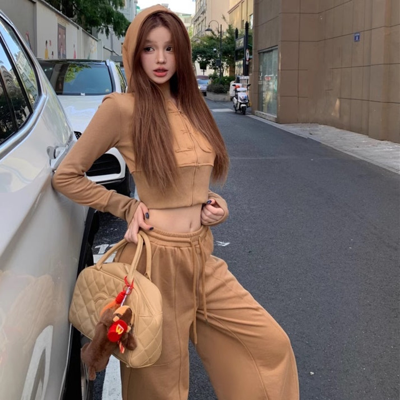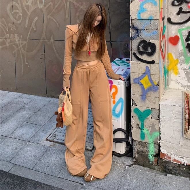 スウェット セットアップ レディース 韓国 ファッション クロップ パーカー ワイドパンツ 上下セット