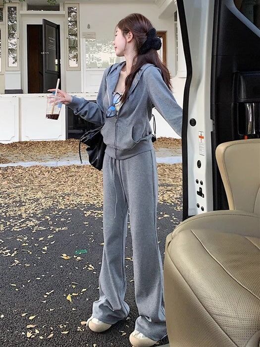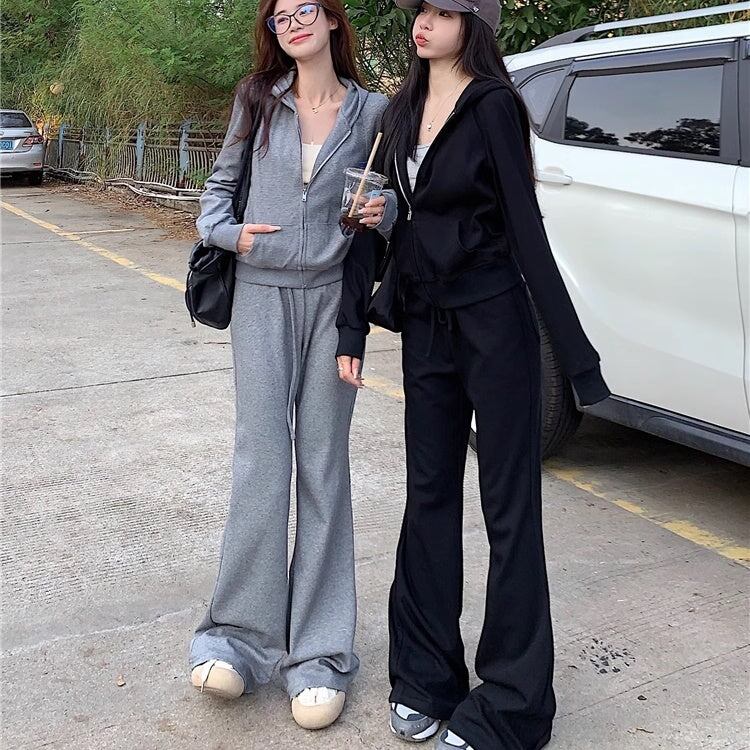 スウェット セットアップ レディース 韓国 ファッション ショート丈 ジップ パーカー フレアパンツ 2点セット