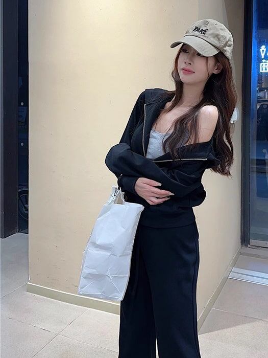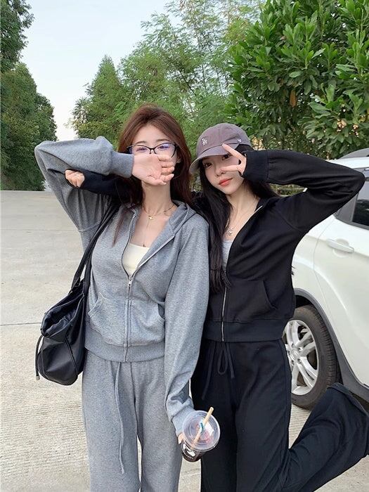 スウェット セットアップ レディース 韓国 ファッション ジップパーカーショート丈? ワイドパンツ 2点上下セット