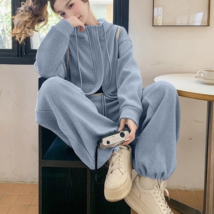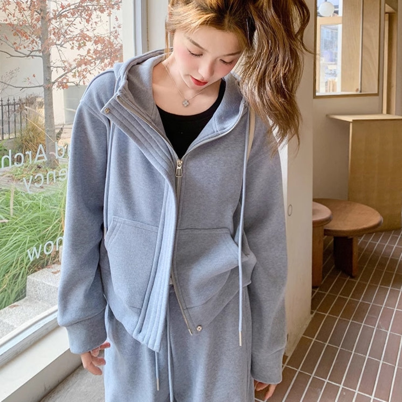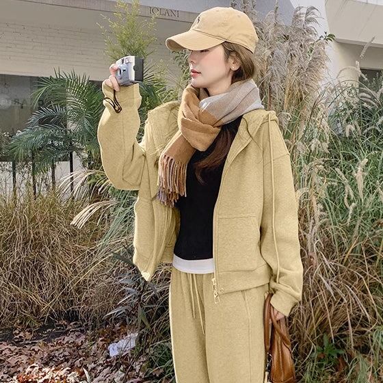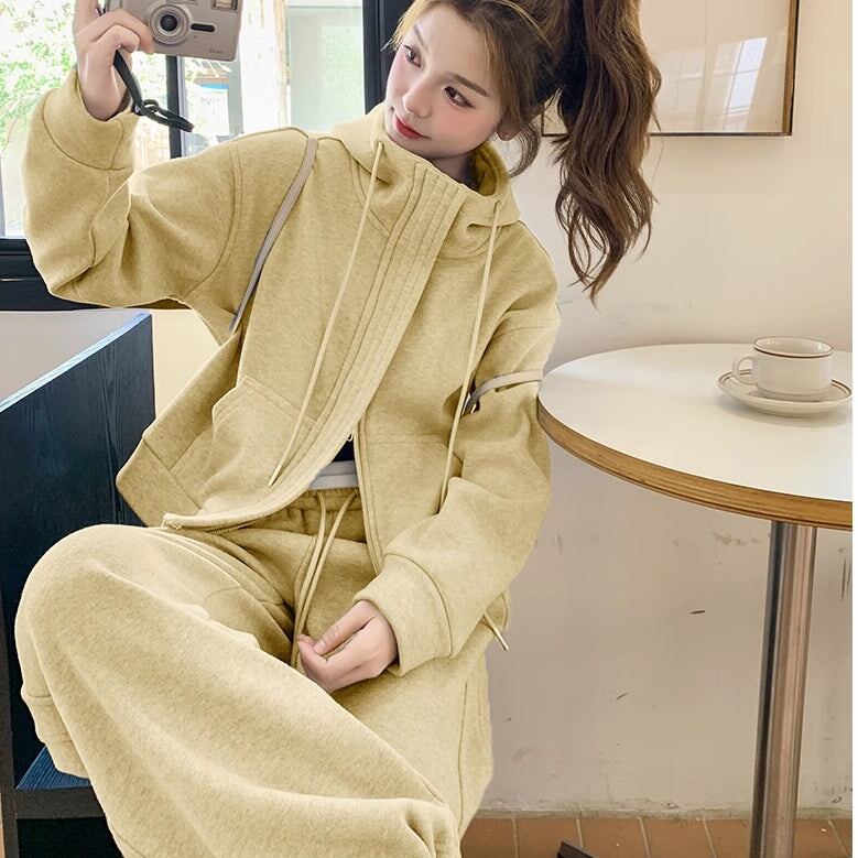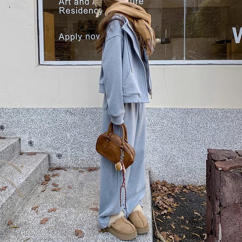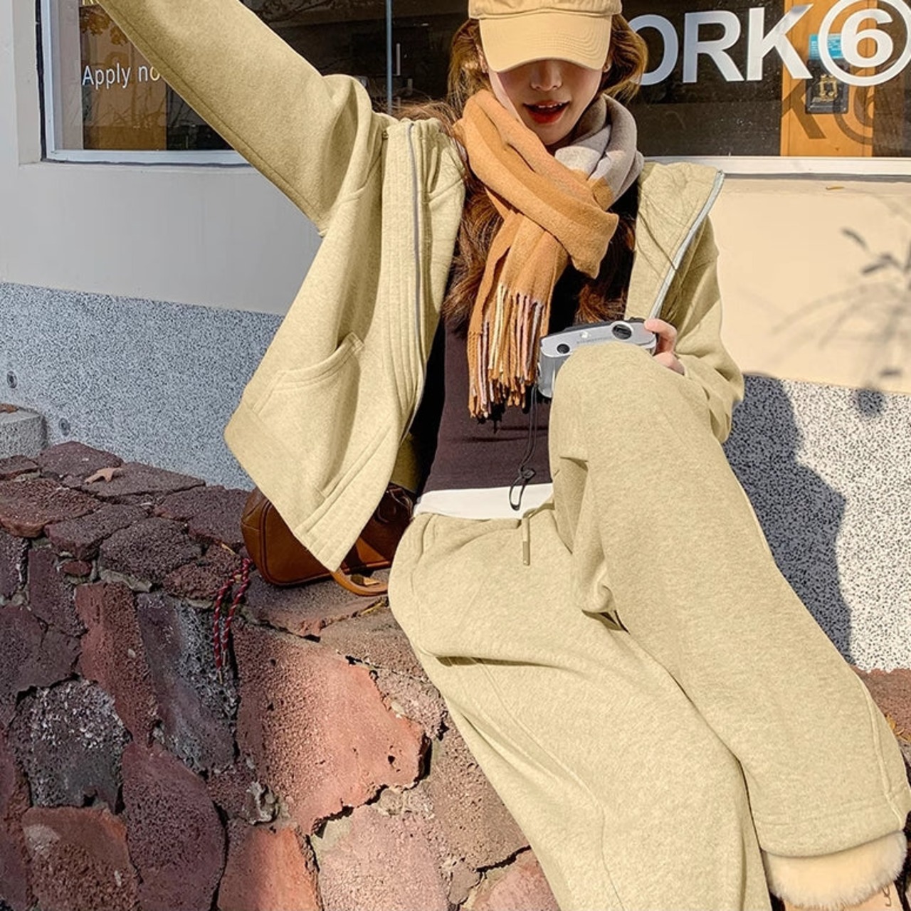 スウェット セットアップ レディース 韓国 ファッション ジップパーカー ワイドパンツ パステルパーカー ダブルジップ ジャケット 上下2点セット