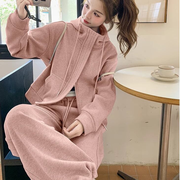 スウェットセットアップ レディース 韓国 ファッション ジップパーカー ワイドパンツ パステルパーカー ダブルジップ ジャケット 上下2点セット