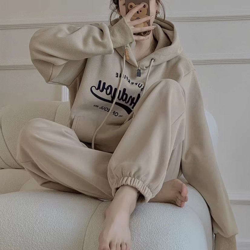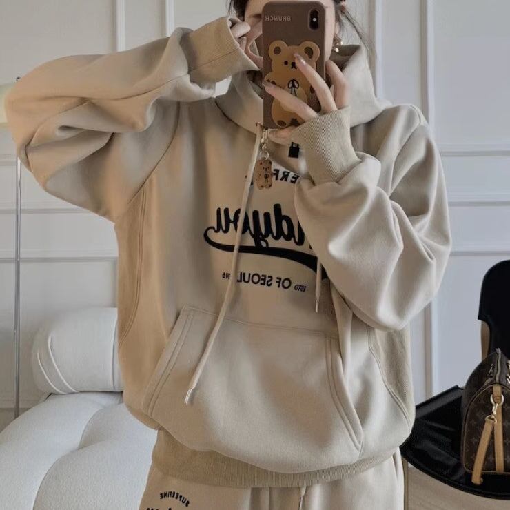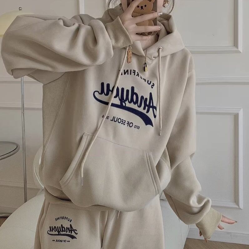 スウェット セットアップ レディース 韓国 ファッション プルオーバーパーカー ジョガーパンツ ロゴ プリント 上下2点セット
