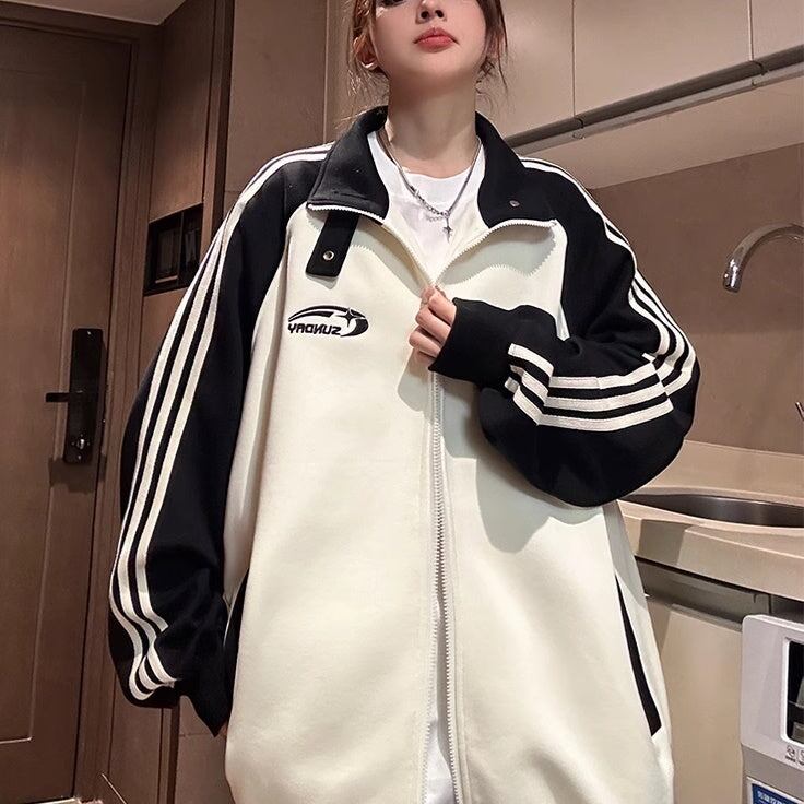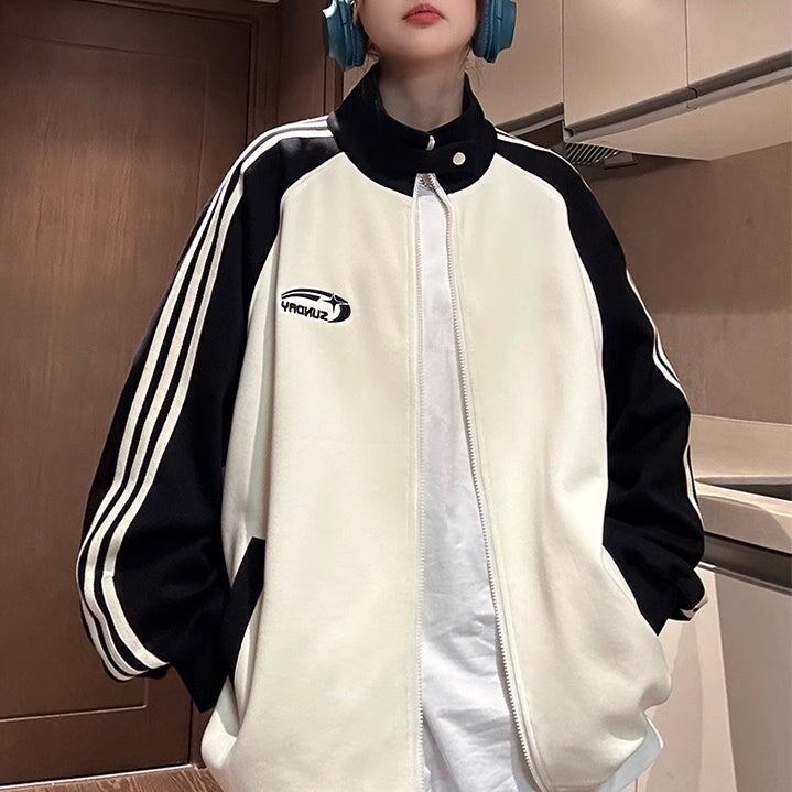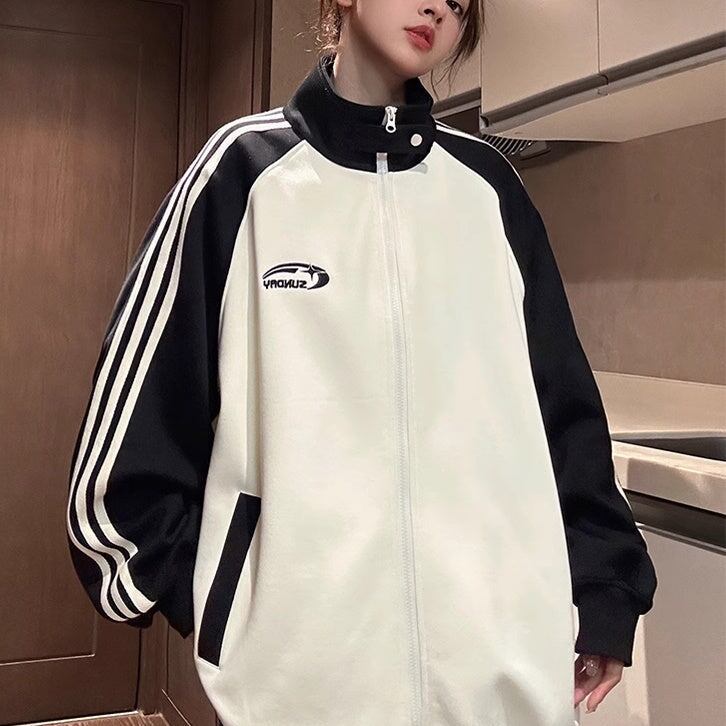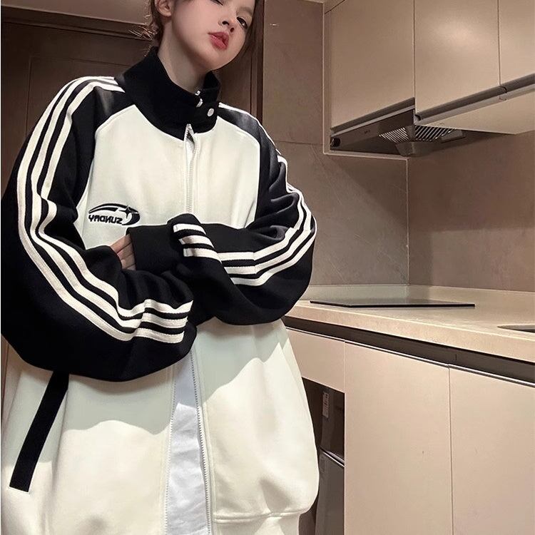 スウェット トラック ジャケット レディース 韓国 ファッション オーバーサイズ サイドライン ジャージ トップス
