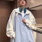 トラックトップ ジャージトップ レディース 韓国 ファッション オーバーサイズ サイズ豊富 バイカラー おしゃれジャージ ジャケット
