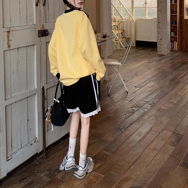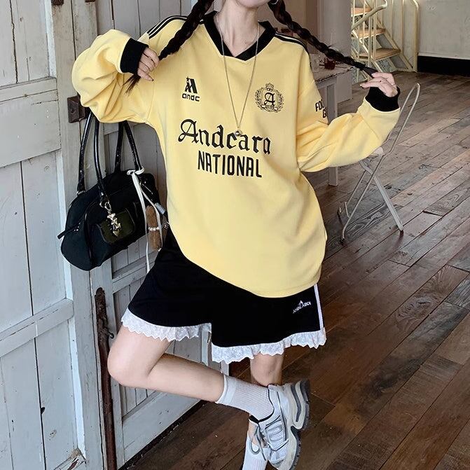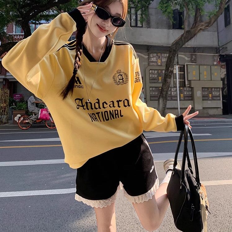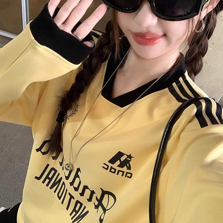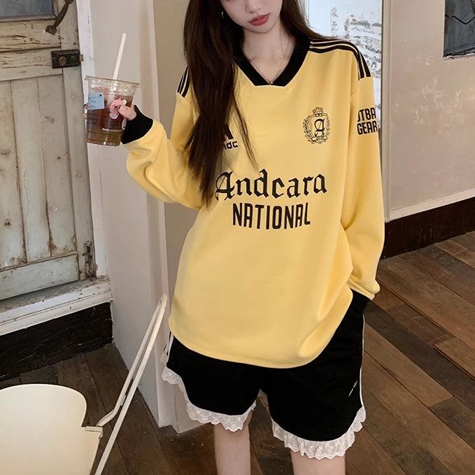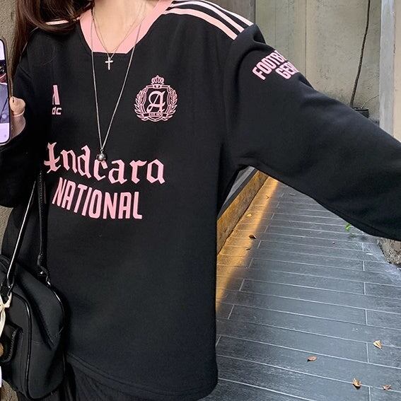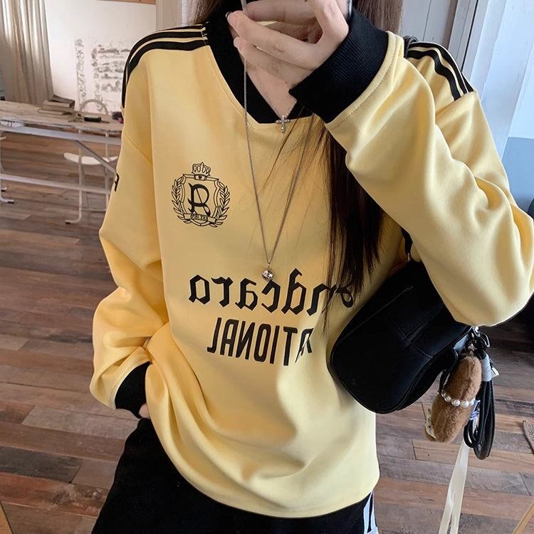 スウェット トレーナー レディース Vネック ライン スポーティー 韓国 ファッション ロゴ トップス ビッグシルエット