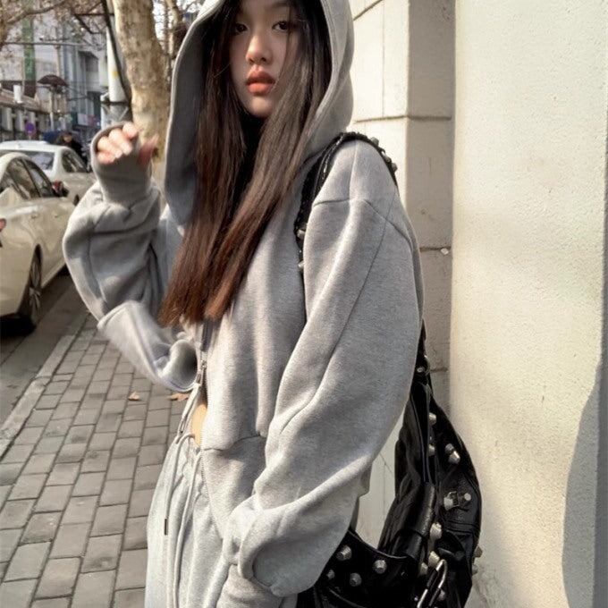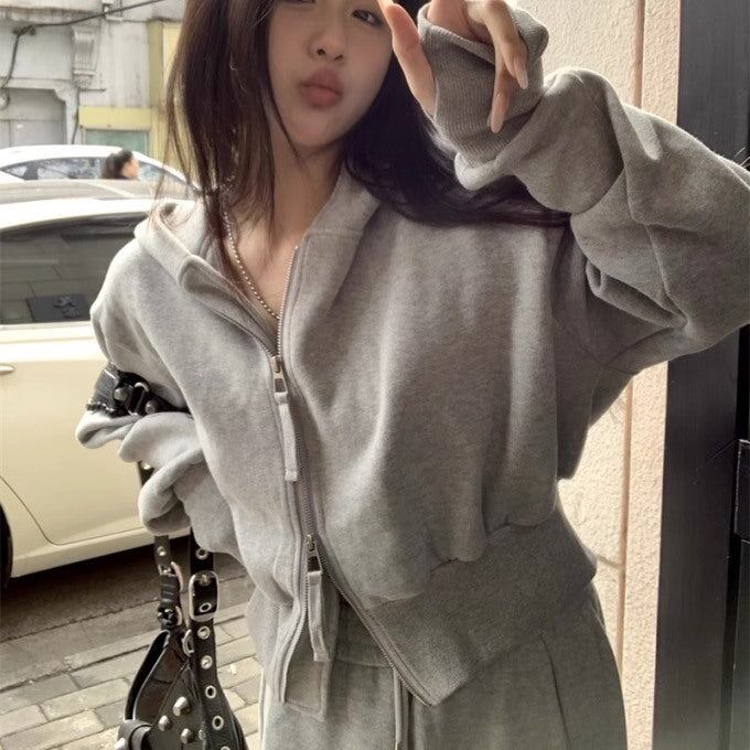 クロップパーカー セットアップ レディース 韓国 ファッション ジョガーパンツ ワイドスウェットパンツ 秋冬 ショートパーカー スタイリッシュ オーバーサイズ スウェット上下