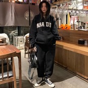 スウェット パーカー セットアップ レディース 韓国 ファッション スウェットパンツ ジップパーカー ロゴ アップリケ 上下セット