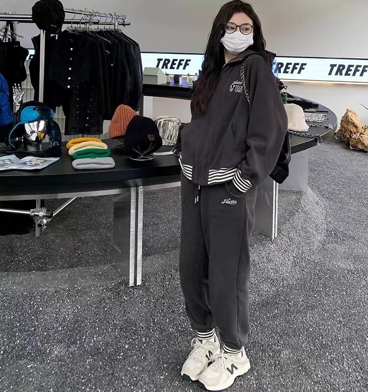 ジップアップトップス♪裾ゴムのスウェットパンツ