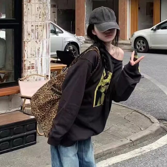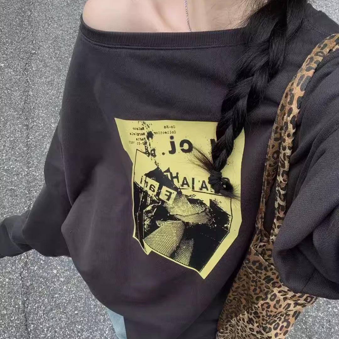スウェット レディース グラフィックプリント ワンショル 韓国 ファッション オーバーサイズ トレーナー