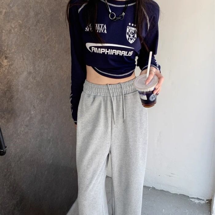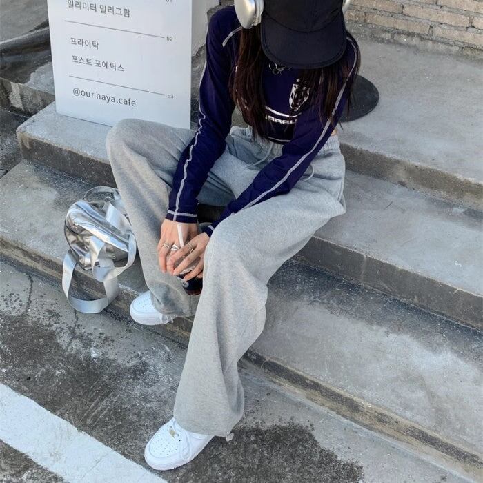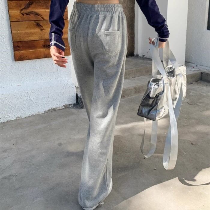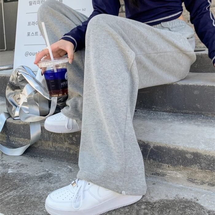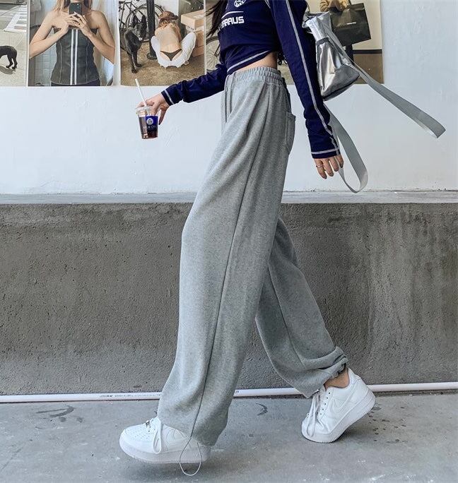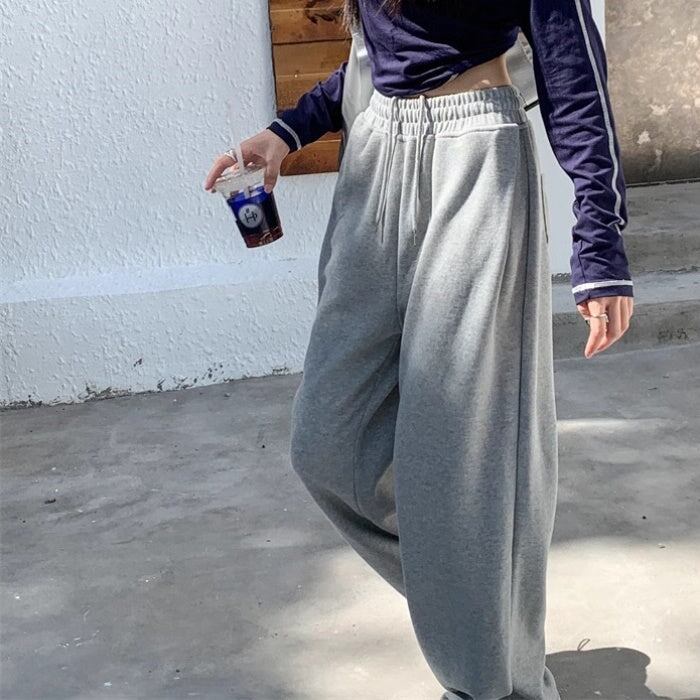 スウェットパンツ レディース 韓国 ファッション グレー ジョガーパンツ ワイドパンツ カジュアルパンツ ゴムウエスト ポケット