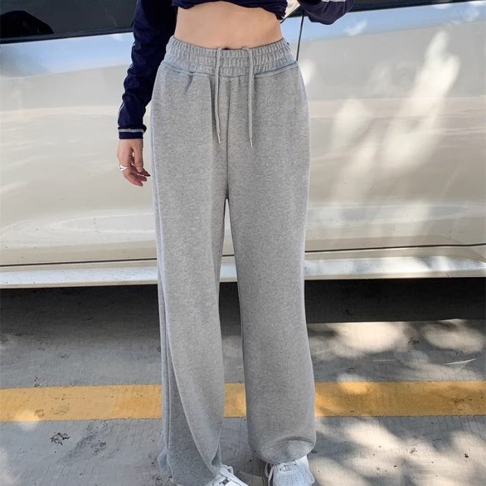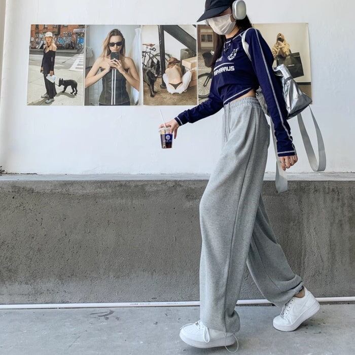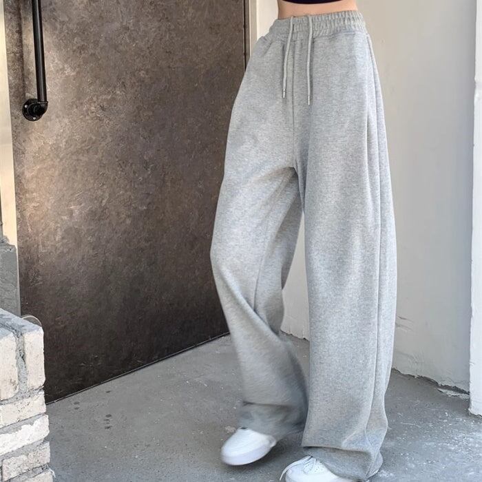 スウェット ワイドパンツ レディース 韓国 ファッション グレー ウエストゴム イージー スウェットパンツ
