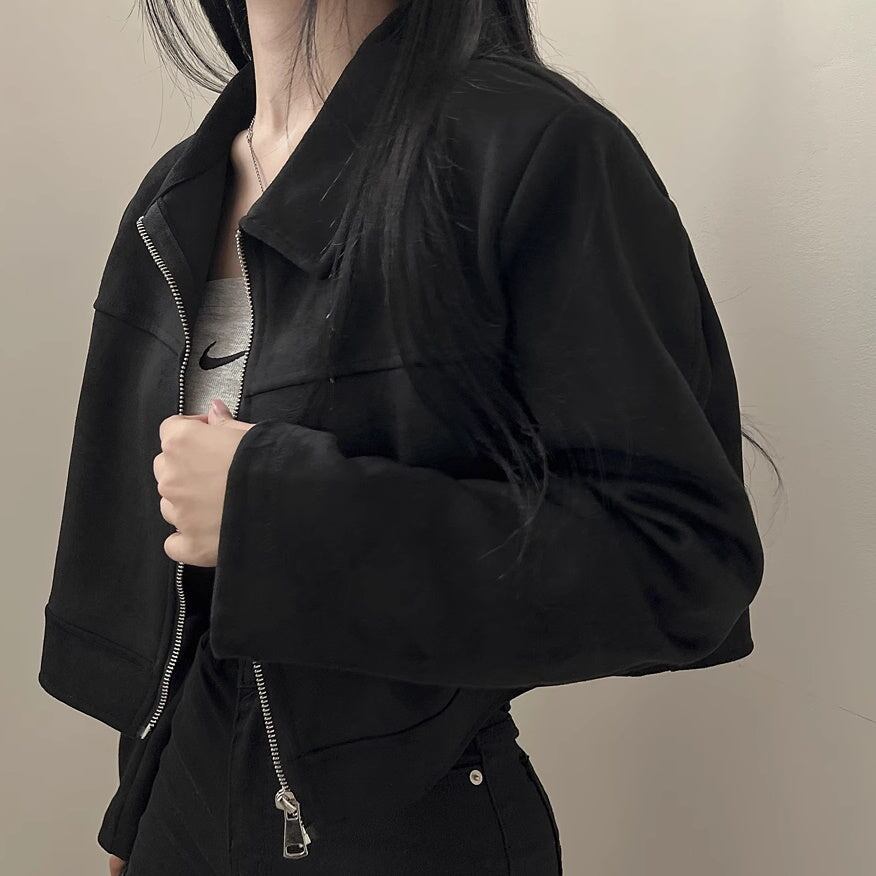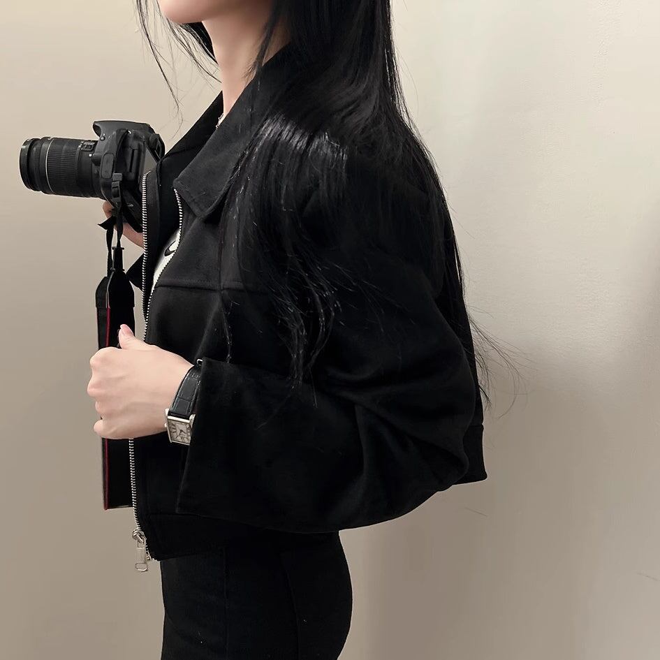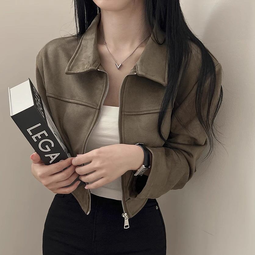 スウェード クロップド ブルゾン レディース 韓国 ファッション ジップアップ バイカーズ ジャケット