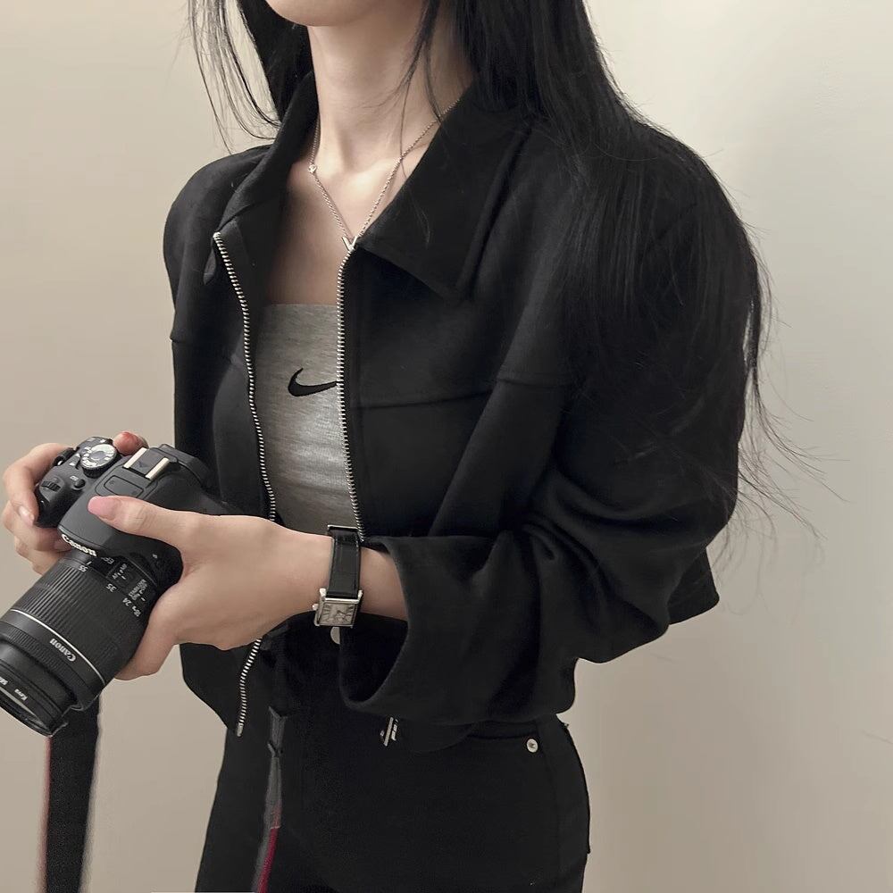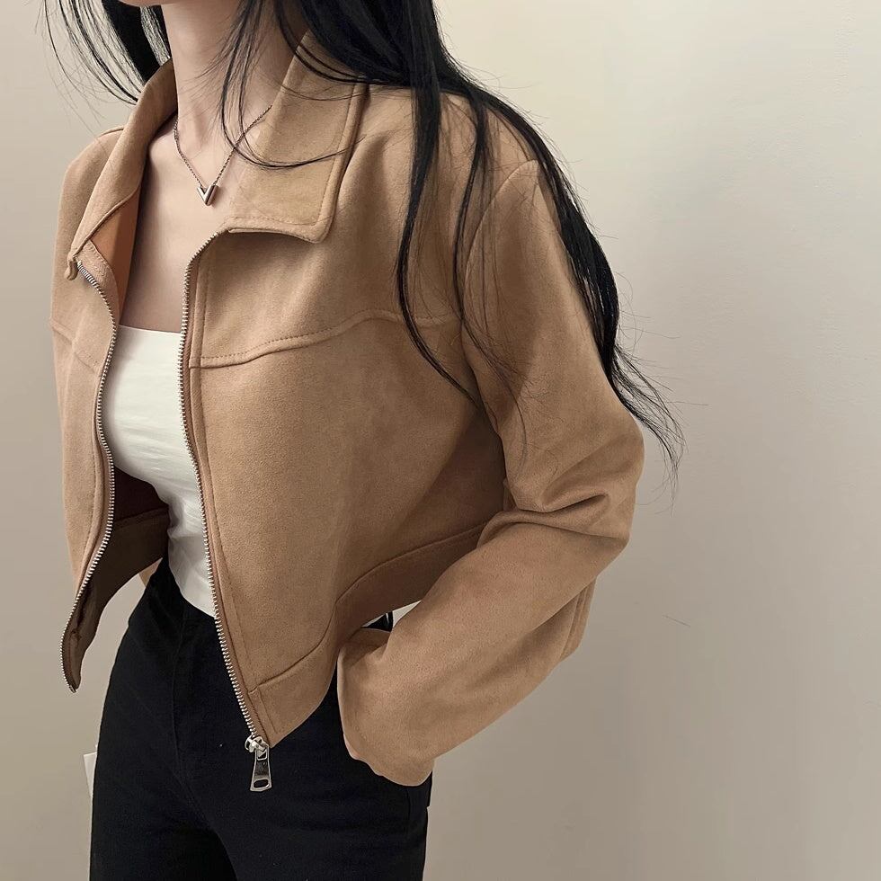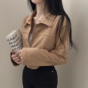 スウェードジャケット クロップドアウター レディース 韓国 ファッション ロング袖 ショート丈 薄手アウター ジップブルゾン