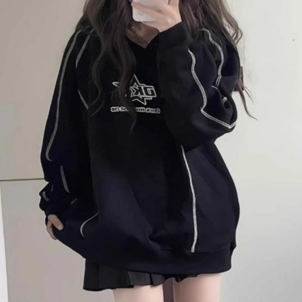 パーカー 裏起毛 レディース 韓国 ファッション スウェット 冬トップス ロゴ 袖ライン メンズライク 黒 大きいサイズ