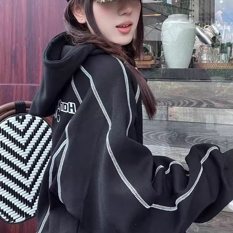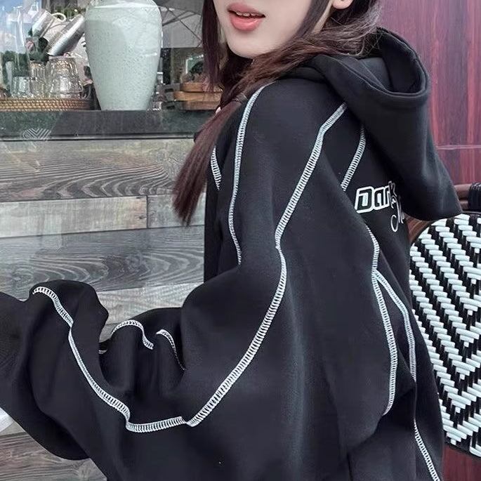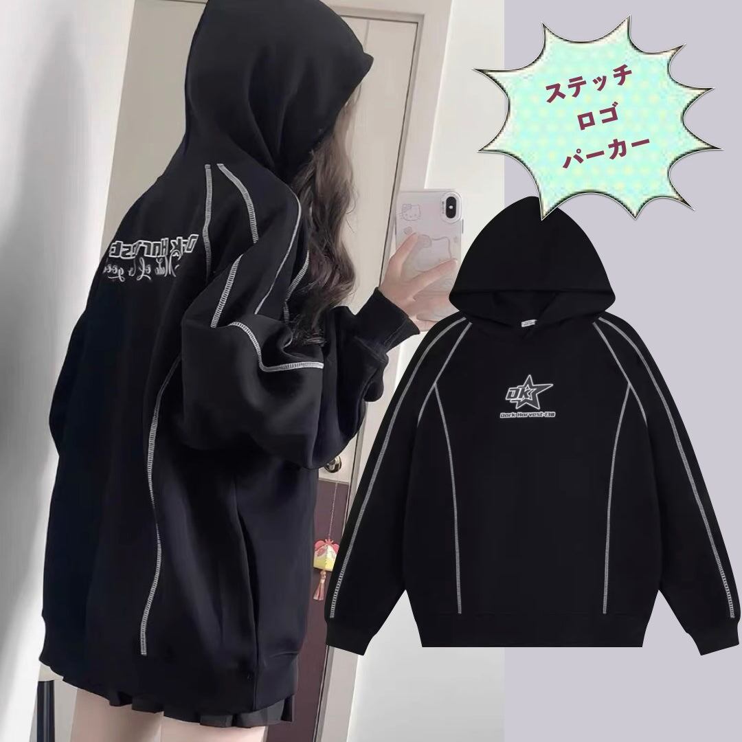 ステッチ ロゴ パーカー レディース 韓国 ファッション オーバーサイズ スウェット プルオーバー フーディー