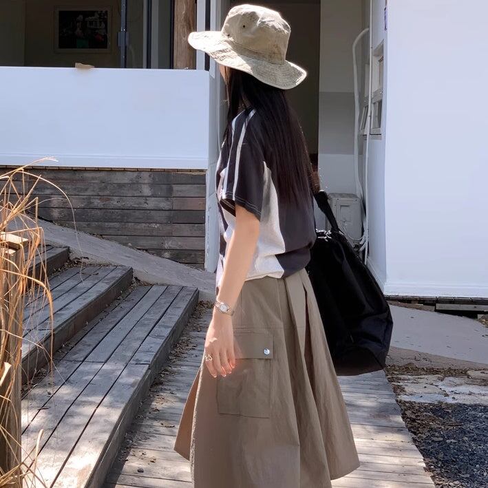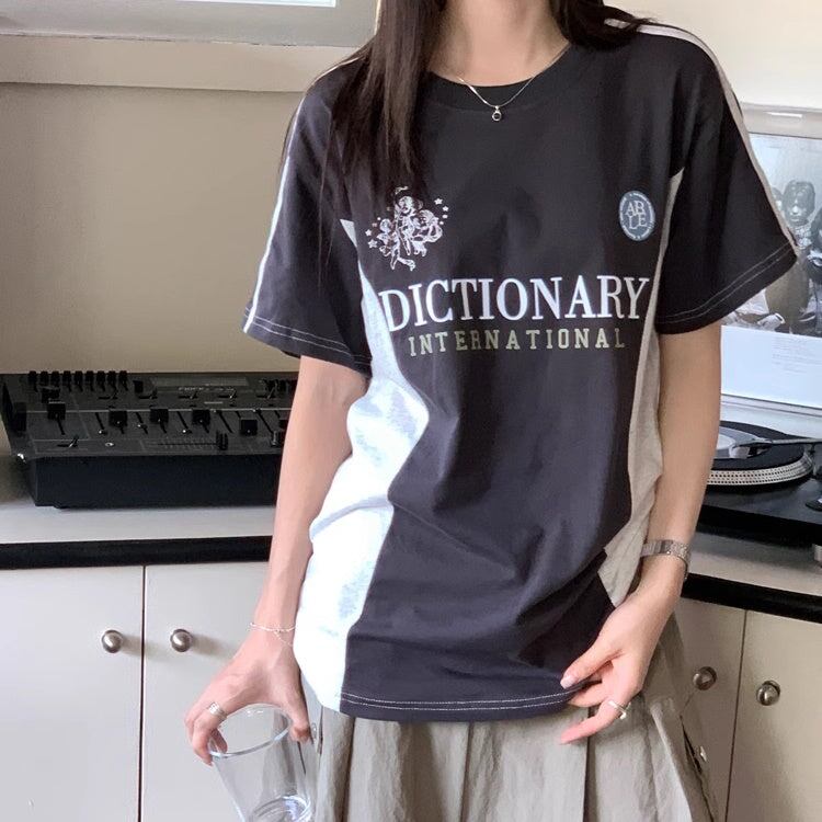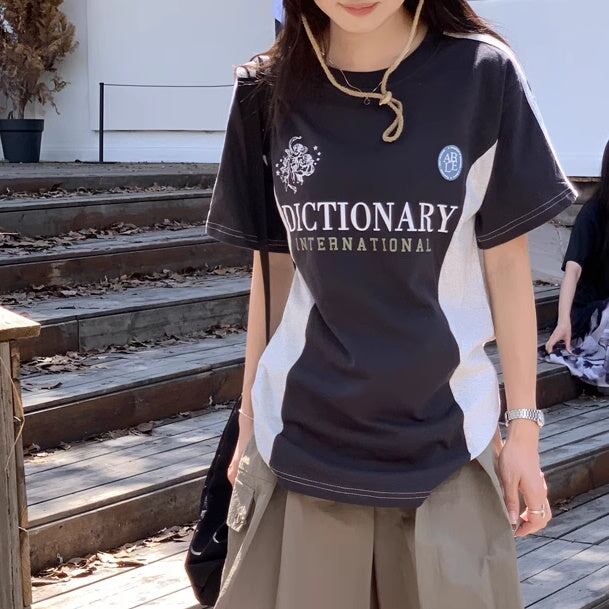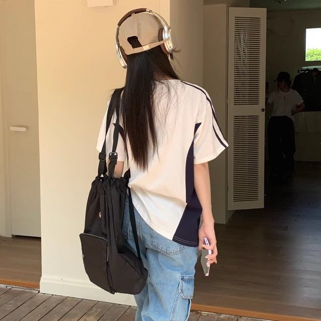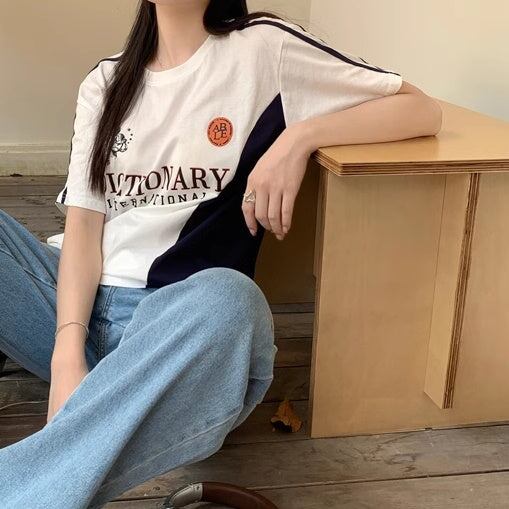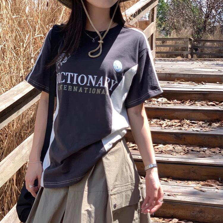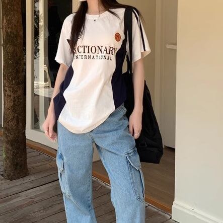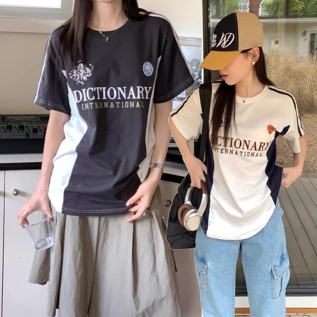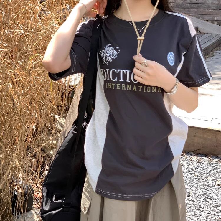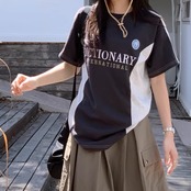 スポーツTシャツ レディース ロゴ ライン スポーティー 韓国 ファッション バイカラー オーバーサイズ T