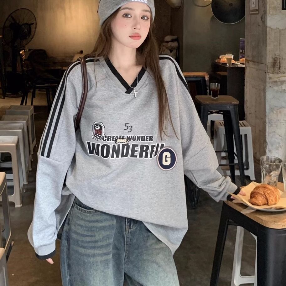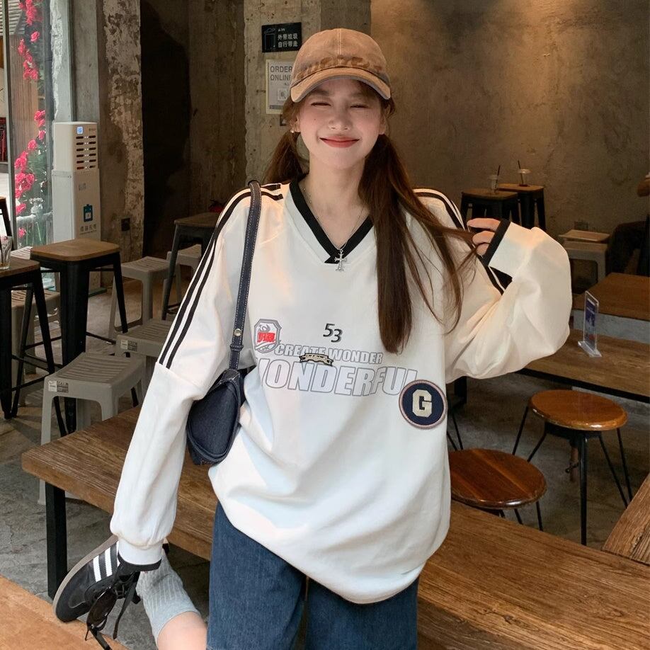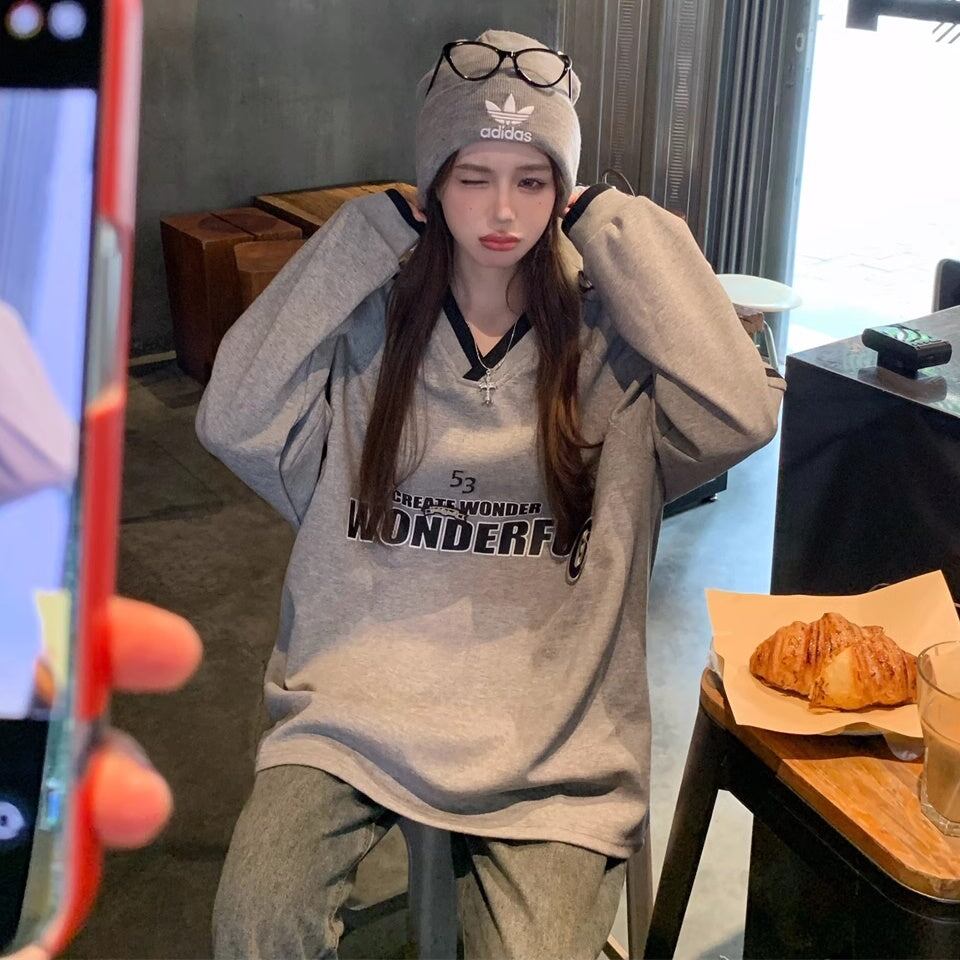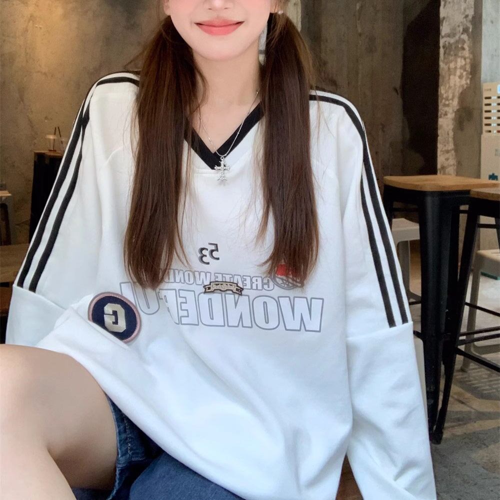 スポーティー ライン スウェット ロングTシャツ レディース 韓国 ゲームTシャツ ロゴ オーバーサイズ トレーナー