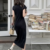 スリット ワンピース 韓国 無地 カットソー フレンチスリーブ 半袖 ロングワンピース タイト 夏ワンピ